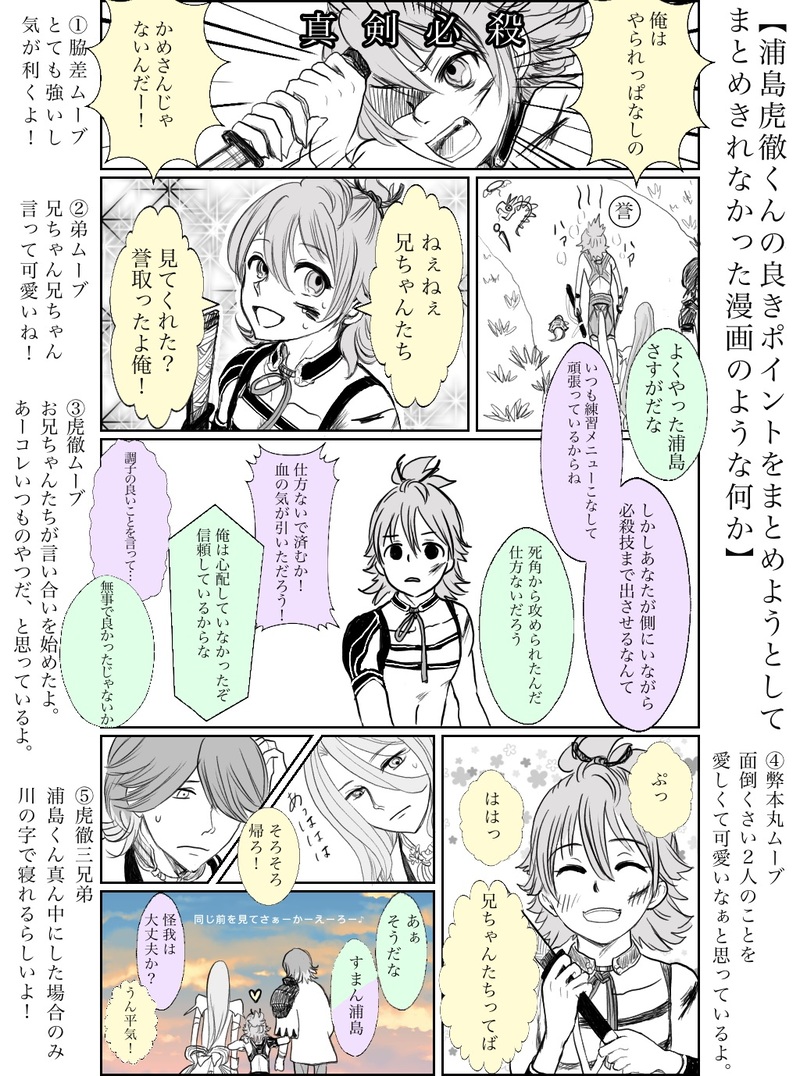 ぴこう☆quiet followMEMO虎徹3兄弟尊い。人生初の漫画を描いてみようとして漫画にならなかったけど楽しかったです、精進します。 #刀剣乱舞 Touken Ranbu Tap to full screen (size:1024x1378).Repost is prohibited Let's send reactions! freqpopularsnackothersPayment processing Replies from the creator Follow creator you care about!☆quiet follow ぴこうDONE『もっとあつまれ!お供ふれんず』開催おめでとうございます!景趣のカラーパレットを、二十四節気ベースで作ってみました🎨転載可、報告不要、自作発言不可で、ご自由にご利用ください☺️(採った色味の違いとかあるかもですが、ご了承ください🙏)イラストは、お供同士仲良くしてて欲しい☺️と、6振りそれぞれのお供と末永く幸せに🥹の気持ちを乗せたサンプル画です。 4 ぴこうDOODLE士伝の亡霊ですが、またしても気に入ったところを漫画風に描きたくなってちまちまと描いてたんだな虎徹兄弟ほんとに最高であった…😌噛み締める… ぴこうTRAINING浦島くんの祝装がね、本当に好きすぎて!背景まで考えて描き始めないから…ポーズもちゃんと考えないからこんなことになるただ、とても気に入ったのでアップするー!これはあれだ、エクスペクト・パトローナムだ脇差の長さってほぼ魔法使いじゃない?知らんけど!浦島の属性は水と光だヨ😉 ぴこうDOODLEなんだか気に入ったのでアップする💪プレーンな髪型の浦島虎徹最高に好きでぇ…図録の髪型設定、定期的に噛み締めるぅ… ぴこうREHABILIらくがきしか描けなくなっちゃったな、練習せねばと筆をとり…浦島の瞳の色って、はっきりと明言されてはないけど、いつも海の碧、を意識しちゃいます。若草に見えることも、緑青(ろくしょう)っぽいと思うことも…なんだかとても想像をかり立てますね…それにしても暑いですね…各位、ご自愛ください ぴこうDOODLE刀ステ全て履修できてるわけじゃないけど、観るたびに番傘の舞には魅了されておりまして、もし推しが出たら番傘で踊るんかなぁ〜〜と憧れていたのですが、とうとう現実になりました😭👏しかもなんだか曲のサビでご挨拶だと…んでめちゃくちゃ可愛い振りをつけてもらっており、なんといいますか、こんなにしていただいて良いのでしょうかと…本当にありがとうございました士伝の亡霊となり彷徨っておる次第であります related works ななくさDOODLE色塗ろうと思いつつ、白いままだと悲伝感あってわりと満足した。 キツキトウDOODLE寒いからぬえもふりたい。 かつおDOODLE #刀剣乱舞#三日月宗近 けいすけMOURNING洗濯している山兄弟。多分完成しませぬ…_(:З」∠)_ なし🍐CAN’T MAKE鶴さん書いたやつの全体〜 knomiDOODLE暖冬暖冬言っても寒い。5周年安定が可愛すぎて悶えました。 マヨコPROGRESS初めて極安定を描いている 屍DOODLEくろだっ Xx_2aoi1_7PAST加州をクールに描きたかった