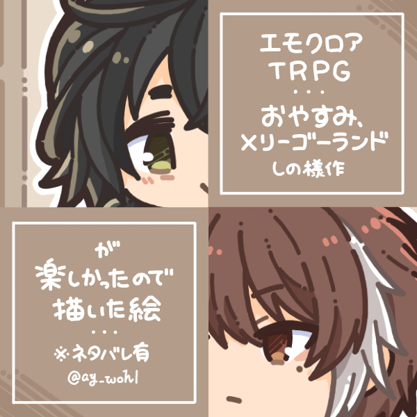 クロリアさんのおかげで素敵なシナリオを知ることができたので、感謝半分描きたかった半分でお借りしました。クールなお兄さん楽しかった~!