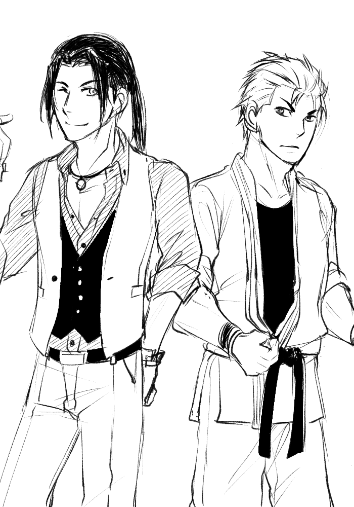 リョウとロバート初めて描くので練習練習。