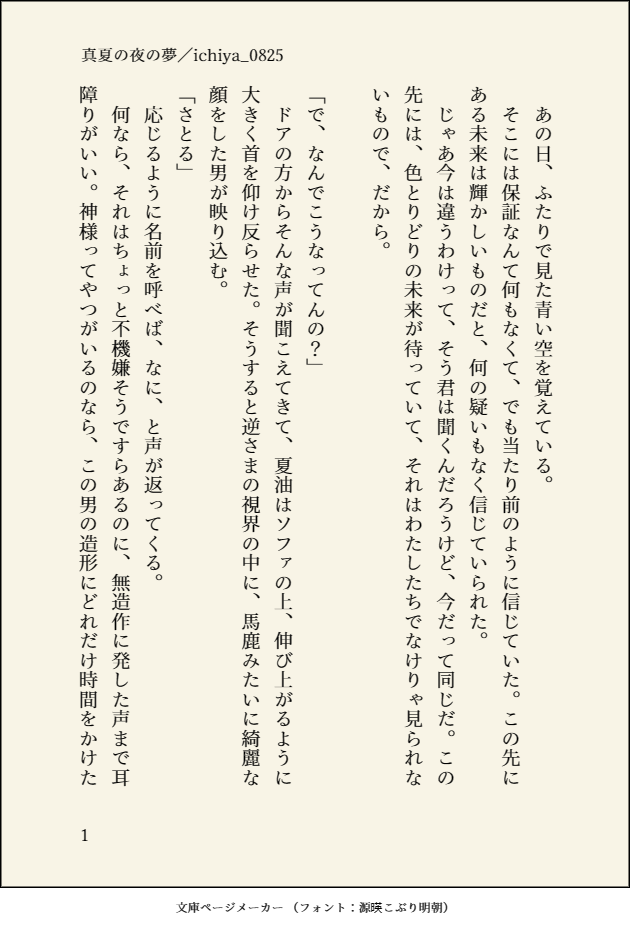 ichiya_0825☆quiet followDONE五夏アイドルパロです。イメージとしては某J事務所をイメージして頂ければ幸いです。ふたりがシンメで踊ってるの想像するとめちゃくちゃ元気になる。五夏コンチケット争奪戦がすごそうですね。 show all(+10 images) Tap to full screen (size:630x928).Repost is prohibited Let's send reactions! freqpopularsnackothersPayment processing Replies from the creator Follow creator you care about!☆quiet follow ichiya_0825DOODLEバニーの日らしいのでシャアシャリを書きました。※お互いバニースーツを着ています。ご注意ください。18歳以上ですか?(y/n) 5815 ichiya_0825DONE最終話が来る前にオールバックは煎じておかなくては(毎回言ってる)(でも一週間が賞味期限だって聞いているので……)と思い必死に書き上げたシャアシャリです。後半ずっとキャスバルって言ってるのでキャスシャリですかこれ。☑0085軸、いろいろあったでしょうが、平和になった後のふたりの話です。☑攻のフェラ/潮吹き/軽い結腸責め/こんなものだと思います。☑なんでも許せる方だけお願いします。→y/n 6050 ichiya_0825DONE7/13に発行する予定のヤパロオメガバース五夏です。☑オメガ五×アルファ夏のヤクザパロです。☑オメガバースに関して、独自の設定が含まれます。☑ヤパロらしい暴力描写があります(五夏間ではありません)☑全体のサンプル及び本には以下の内容が含まれます。☑結腸責め/攻めのフェラ/尿道プレイ/エネマグラ/潮吹き/たぶんこれくらいだと思う他にもあったらすまん。 8422 ichiya_0825DONE7/13に発行する予定のヤパロオメガバース五夏です。☑オメガ五×アルファ夏のヤクザパロです。☑オメガバースに関して、独自の設定が含まれます。☑ヤパロらしい暴力描写があります(五夏間ではありません)☑全体のサンプル及び本には以下の内容が含まれます。☑結腸責め/攻めのフェラ/尿道プレイ/エネマグラ/潮吹き/たぶんこれくらいだと思う他にもあったらすまん。 7727 ichiya_0825DONE7/13に発行する予定のヤパロオメガバース五夏です。☑オメガ五×アルファ夏のヤクザパロです。☑オメガバースに関して、独自の設定が含まれます。☑ヤパロらしい暴力描写があります(五夏間ではありません)☑全体のサンプル及び本には以下の内容が含まれます。☑結腸責め/攻めのフェラ/尿道プレイ/エネマグラ/潮吹き/たぶんこれくらいだと思う他にもあったらすまん。 7213 ichiya_0825DONE7/13に発行する予定のヤパロオメガバース五夏です。☑オメガ五×アルファ夏のヤクザパロです。☑オメガバースに関して、独自の設定が含まれます。☑ヤパロらしい暴力描写があります(五夏間ではありません)☑全体のサンプル及び本には以下の内容が含まれます。☑結腸責め/攻めのフェラ/尿道プレイ/エネマグラ/潮吹き/たぶんこれくらいだと思う他にもあったらすまん。 6767 recommended works 五十六DONE2021年12月の俺達最強DR2021で頒布した折り本のWEB再録になります。タイトルまんまオナバレする無自覚ドMの傑くんです。楽しんでね!パス→18歳以上? 7 chikichiki48DOODLE五夏① nie_sgDONE愛とセックス┆呪専五夏┆9ページ初めて書いた五夏です。 9 mukasitokageMAIKING はるしかDOODLE「見惚れる」おかお編、ただのいちゃいちゃ。 3 nayzDOODLE♀ satosugupass is the ship name without vowels shino_2652DOODLEゴミ捨て場でイケメン拾った話の続き…というか蛇足の五夏🔞 2ページしかないです 2 payangDOODLE五夏Are you 18? (yes/no) 2 uaa*DONEねんどろ五夏ちゃん。童貞をコロすセーターお気に入りですwスイーツまとめました 17