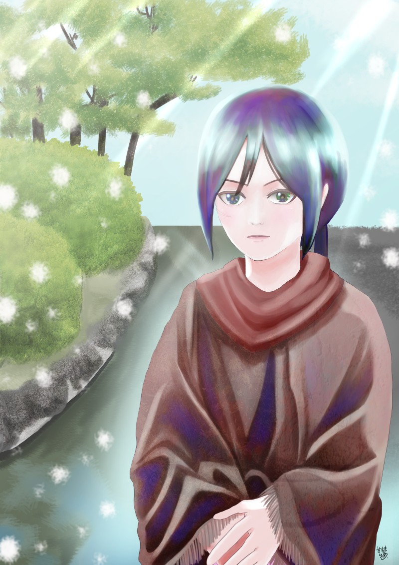 ミカサちゃん頑張りました。ジャンと真剣な話を始めようとしているところのイメージ。