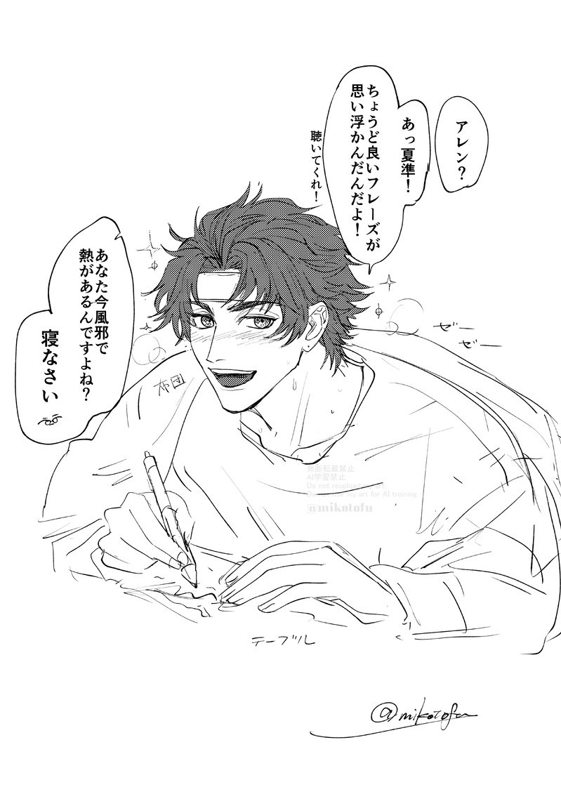 mikotofu☆quiet followDOODLE初描きアレン君 20250111 Tap to full screen (size:3638x5102).Repost is prohibited Let's send reactions! freqpopularsnackothersPayment processing Replies from the creator Follow creator you care about!☆quiet follow mikotofuMOURNING真夏に描いていた直匋直漫画です。(FCショートエピソードがすごすぎたので記念に公開します)お誕生日おめでとうございます! 20250918 5 mikotofuDOODLE書こうとしてた直匋ネーム 恋人扱いって書こうとして大人扱いにしたけど恋人扱いって書きたい気持ちがある mikotofuMOURNING描こうとしてたもの②。五周年衣装なおよういおぜんネタネーム。 20250113 mikotofuMOURNING描こうとしてた直匋&依善漫画のネームです。絵はありません。供養。 20250112 7 mikotofuDOODLE初描きアレン君 20250111 mikotofuSPUR ME依善 ぜんぜんはいってない recommended works そらからぽいぽいDONE「優しさの記憶」時透有一郎無一郎くんのお誕生日に寄せた漫画です無一郎くんと伊黒さんのFBネタでいつも通りの距離が近いブロマンス心の広い方向けお誕生日おめでとうございます不器用な優しさと共にある 懐かしく深い幸せの記憶※転載禁止※Please do not repost my artwork.※Repost is prohibited. 7 まわたDOODLEタルタル描くの本当に難しい ya_shiro_kTRAININGカカ忌/calji小説練習4回目未亡人忌の話。※忌が既婚者、妻の話をよくする誤字脱字あり、読み直してません。読了後の苦情はお控えください。 3297 はるいちDONE毎月12日は12(わんにゃん)の日を勝手にやってますログ忘猫×らおずの謎時空。少々裸体。ネタが湧いたら12日更新。12月12日分更新意地でも雪に触れたくないわんじ 10 husinn43DOODLE『ヨウカイロ』*◇神多羅木結巫@youkairo_008裏cshttps://drive.google.com/drive/folders/18ohElR8PrHVhkJ9n54IU2zUeHfjr0zO_ 3 布団干すMEMO定期ゲーム① いろいろ 21 EGODOODLEボ隊がバニー島行く話 5Pお前らがバニーになるんだよ時系列的には多分島繋ぎの前半辺り、2P目にちらっと4つ目の海域までのネタバレ 6 守童 もどPAST代理まとめ 6 LinYanRDONE 6169