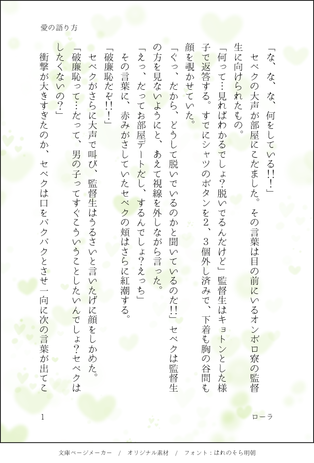 ローラ☆quiet followDONE⚡🌸 ※🌸がビッチ「愛の語り方」 #セベ監 superintendentSebbe. show all(+3 images) Tap to full screen (size:630x928).Repost is prohibited Let's send reactions! freqpopularsnackothersPayment processing Replies from the creator Follow creator you care about!☆quiet follow ローラDONE切ない系⚔🌸居なくなってしまった過去の恋人を思うSSシル目線、監♀デフォルト名 4 ローラDONE⚔️🌸触ってほしい監督生♀の話。ややコミカル。監名前なし 4 ローラDONEカリ監、ネームレス眩しい貴方に片想いタイトル「カルピスサマー」前半は監side、後半はカside 6 ローラMOURNING⚡🌸「kiss me,kiss you」付き合いたてで、キスを待ちわびてる監督生ネームレス 6 ローラDONE⚡🌸 ※🌸がビッチ「愛の語り方」 4 related works ShinDONE学生セベ監未満 小話まとめ【魔法のワルツ展示用再掲】 27 ShinDONE卒業後セベ監長編おまけ【魔法のワルツ展示用再掲】ちょっとセクシィな💋あり 10 s154029MOURNINGシリーズを完結させた後のおまけ用に書いていたスケベです。割と激しめ。既に結婚済み、ラブラブなセベ監(デフォルト名)です。初夜じゃなくてごめん、お互い蕩け切っているようなエッチを書きたかったんだ…拙いですけど、エロさについては頑張って追求しました。少しでも楽しんでいただければいいなと思います。 14595 kinoko12069MAIKINGいつか書いてたセベ監。セベ監と言いつつ書きたかったのはセベクの両親の馴れ初めです。捏造過多です。今回は描写の都合でセベクは見た目も性格もほぼお母さん似ということにしていますが、瞳の色だけはお父さん似とかそういうのいいなぁと思います 15587 ShinDONE卒業後03 セベ監長編【魔法のワルツ展示用再掲】 39 s154029DOODLE手描きでセベ監えっち(いつかくっついた後です)本番行為はギリギリ描いてない…けど一応18歳に満たない人は見ないでね照れ故に翌朝の様子も描いたよ私はオチを描かなければ気が済まないのか??(照れです) エルメローナDOODLEセベ監⚡️🌸がなかなか進展しない。誰か助けて サク*DOODLE※女監督生顔あり明日クリスマスか~って思って気づいたら手が勝手に描いてた落書き。 s154029BLANK片恋状態四葉の花言葉「私のものになって」シロツメクサの花言葉「私を思って」
