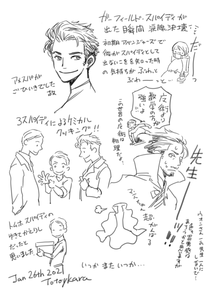 ととやから☆quiet followDOODLE Tap to full screen (size:705x1000).Repost is prohibited Let's send reactions! freqpopularsnackothersPayment processing Replies from the creator Follow creator you care about!☆quiet follow ととやからDOODLEGOTG3 感想と言う名のらくがき ※ネタバレしてます ととやからDOODLEまずは言っておきたいこと。早々と見限ったガーディアンズ達、すっごくらしくて最高!(大笑)ベイルさんはすっごくベイルさんで、ベイルさんだからあの最後が納得できたそんな表情と瞳。ジェーンは少し悲しかったけど、彼女が見せてくれた物語は最後までわくわくさせてくれました。(一作目の彼女がとても好きだったので)彼女が知りたかった世界の謎について、新しい研究を始めるのかもと思うと嬉しい。 ととやからDOODLE未来が描かれるとしたら、龍水は科学王国から飛び出して冒険家なり財閥を大きくするなりするかなと思ってたので、龍水の白衣はびっくり科学王国に留まっているって思っていいのかな(次の瞬間には違う服を着ていたような…?)くっつくかどうかは置いておいて(妄想ですよー)「科学王国の一員」であることをやめないでくれたの嬉しい ととやからDOODLE部分妄想科学のバックボーンはないので、フワッと ととやからDOODLE ととやからDOODLE先週のフランソワの表情がどうしても読めなかったんだけど、とりあえず無事に着いて安心したってことなのかなースイカちゃんはちゃんとお留守番でした recommended works nico00025PROGRESSノワバグ2ショット作成なう#Ladybug #レディバグ nico00025DONE #レディバグ #ノワバグ nico00025PROGRESS #レディバグノワマリも描きたい欲を止められない nico00025PROGRESS #レディバグさっきのと合わせて完成させたいノワマリ nico00025DOODLE #レディバグノワマリの独特の距離感好きなんだけど表現難しいマン 2 nico00025PROGRESS #レディバグ「可愛くなりたい」BGMにノワマリのマリネット詰め込みラフ。 nico00025PROGRESS #レディバグかまちょマリネット可愛いがすぎるのでは…あ~~完成させたい nico00025PROGRESS #レディバグラフにどんどこ加筆しつつ線画の完成は見えてきた。何か足すか考えるのも楽しい…恋するマリネット可愛い… nico00025PROGRESS #レディバグ尻とパーカーとベルトが描きたいんだ