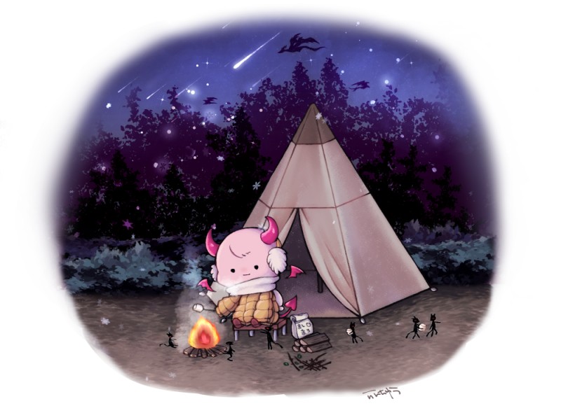 サバトの火を貰ってマシュマロを焼くさきゅばすさん(冬キャンプ)