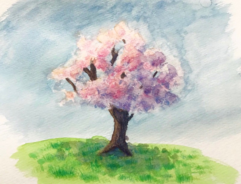 水彩と色鉛筆。制作時間は1時間くらい?