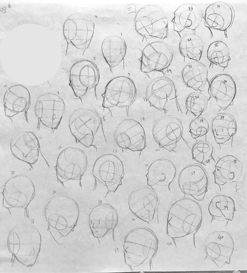 この頭部をいろんな角度で100描く練習です