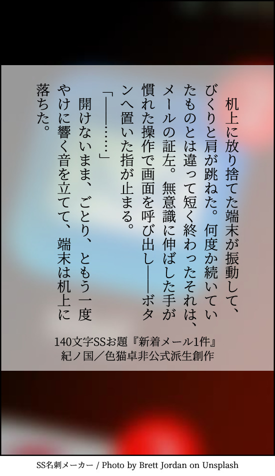 貴方はたけおので『新着メール1件』をお題にして140文字SSを書いてください。