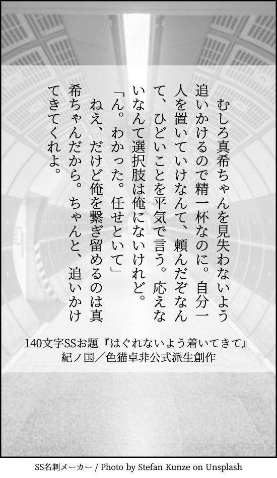 紀ノ国さんは『はぐれないよう着いてきて』をお題に、140字でSSを書いてください。