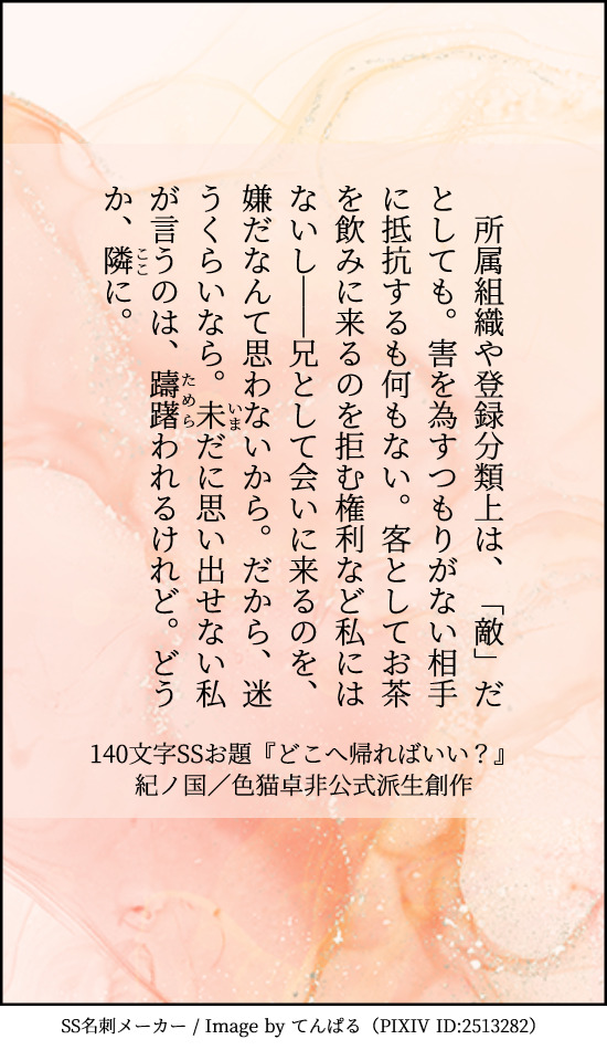 貴方は近衛兄妹で『どこへ帰ればいい?』をお題にして140文字SSを書いてください。