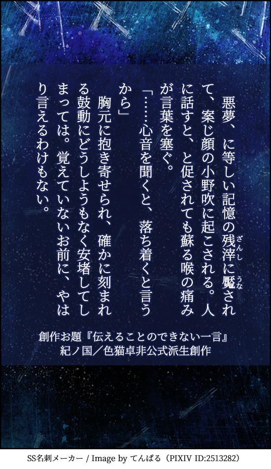 過去編たけおのへのお題は『伝えることのできない一言』です。