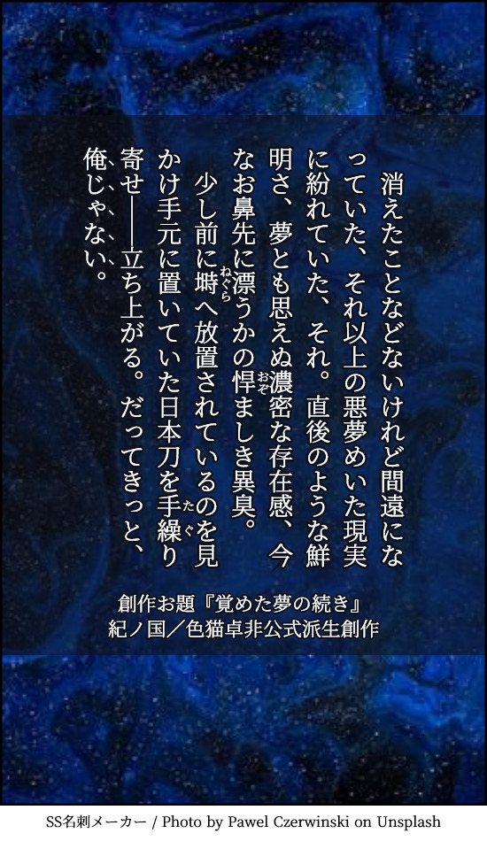 たけおのへのお題は『覚めた夢の続き』です。