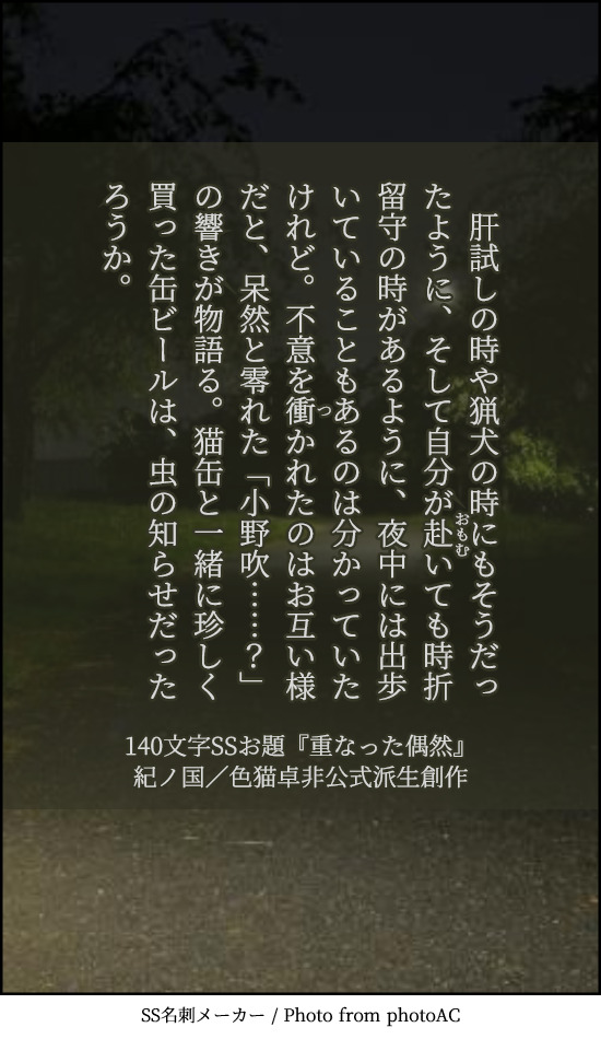 貴方はたけおので『重なった偶然』をお題にして140文字SSを書いてください。