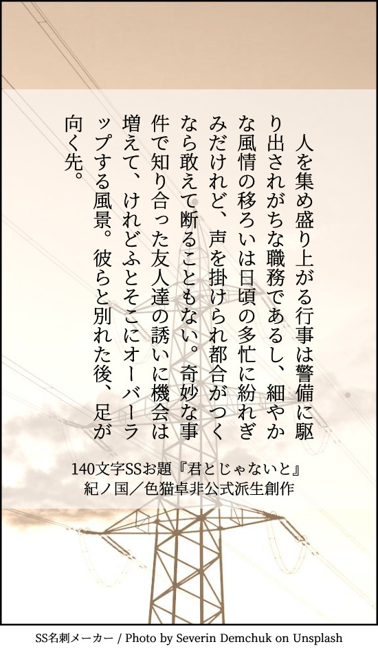紀ノ国さんは『君とじゃないと』をお題に、140字でSSを書いてください。