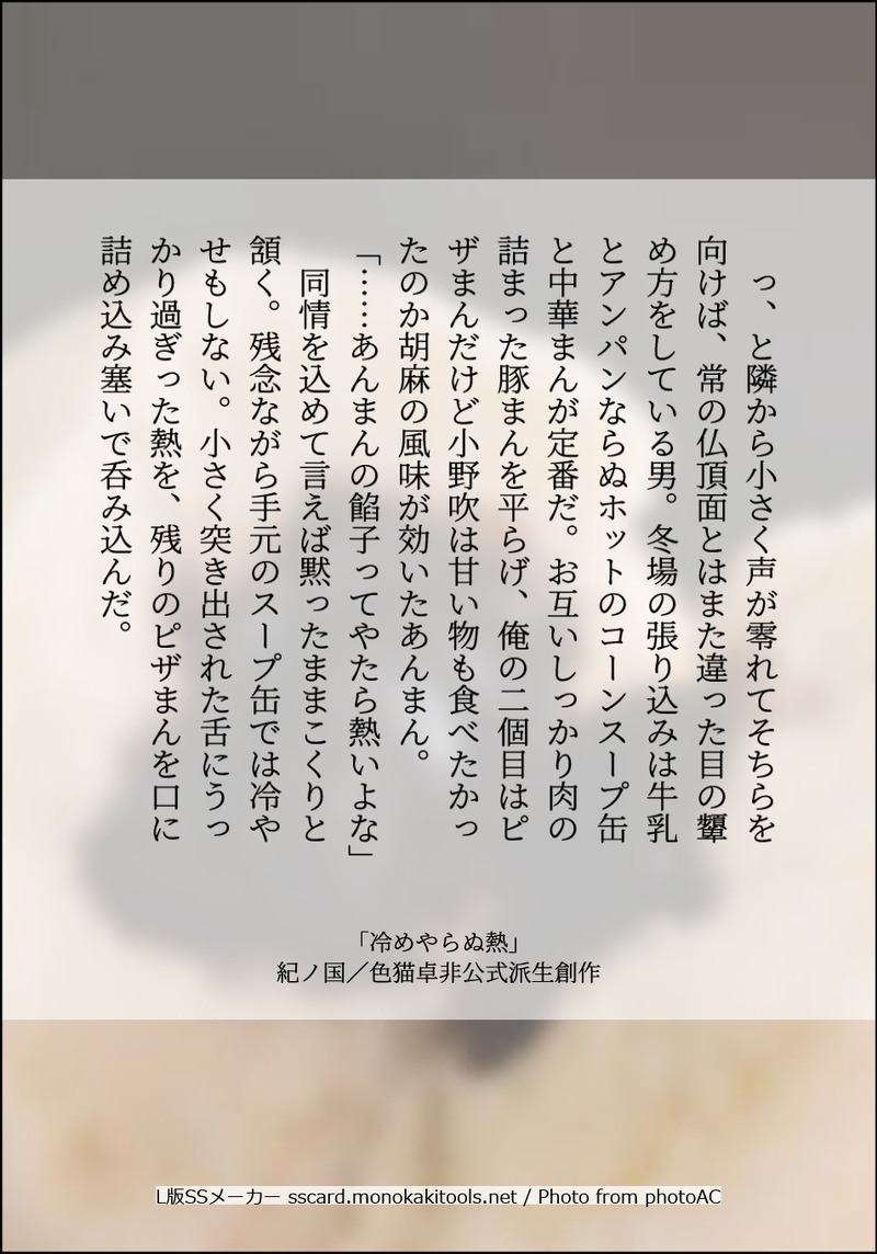 tr_imbtk☆quiet followDONE中華まんの日過去編たけおのSS「冷めやらぬ熱」画像作成:L版SSメーカー sscard.monokakitools.net色猫卓 CoC動画 非公式派生創作「株式会社アークライト」及び「株式会社KADOKAWA」が権利を有する『クトゥルフ神話TRPG』シリーズの二次創作物 ##過去編たけおの Tap to full screen (size:954x1365).Repost is prohibited Let's send reactions! freqpopularsnackothersPayment processing Replies from the creator Follow creator you care about!☆quiet follow tr_imbtkDONE貴方はのぎまきで『噂の二人』をお題にして140文字SSを書いてください。お題:shindanmaker.com/375517画像作成:sscard.monokakitools.net色猫卓 DX動画「Mythical Bloodline」非公式派生創作「著:矢野俊策/F.E.A.R.、KADOKAWA」が権利を有する『ダブルクロス The 3rd Edition』の二次創作作品 tr_imbtkDONE貴方は過去編たけおので『捨てられないガラクタ』をお題にして140文字SSを書いてください。お題:shindanmaker.com/375517画像作成:SS名刺メーカー sscard.monokakitools.net色猫卓 CoC動画 非公式派生創作「株式会社アークライト」及び「株式会社KADOKAWA」が権利を有する『クトゥルフ神話TRPG』シリーズの二次創作物 tr_imbtkDONE貴方はたけおので『こっちの台詞です』をお題にして140文字SSを書いてください。お題:shindanmaker.com/587150画像作成:SS名刺メーカー sscard.monokakitools.net色猫卓 CoC動画 非公式派生創作「株式会社アークライト」及び「株式会社KADOKAWA」が権利を有する『クトゥルフ神話TRPG』シリーズの二次創作物 tr_imbtkDONE貴方は大正たけおので『時々、面倒くさいけど。』をお題にして140文字SSを書いてください。お題:shindanmaker.com/587150画像作成:SS名刺メーカー sscard.monokakitools.net色猫卓 CoC動画 非公式派生創作「株式会社アークライト」及び「株式会社KADOKAWA」が権利を有する『クトゥルフ神話TRPG』シリーズの二次創作物 tr_imbtkDONE貴方は近衛兄妹で『唯一の』をお題にして140文字SSを書いてください。お題:shindanmaker.com/375517画像作成:sscard.monokakitools.net色猫卓 DX動画「Mythical Bloodline」非公式派生創作「著:矢野俊策/F.E.A.R.、KADOKAWA」が権利を有する『ダブルクロス The 3rd Edition』の二次創作作品 tr_imbtkDONEのぎまきへのお題は『欠けた愛を探してる』です。お題:shindanmaker.com/392860画像作成:sscard.monokakitools.net色猫卓 DX動画「Mythical Bloodline」非公式派生創作「著:矢野俊策/F.E.A.R.、KADOKAWA」が権利を有する『ダブルクロス The 3rd Edition』の二次創作作品 recommended works satori_cfyMAIKINGジョルポルとりあえずエロ前まで 6 ほいほいPAST支部にあげてる恵誕(五伏)、懐かしくなったので… 4541 /maruAPROGRESS みりんかんDONE可愛いと信じる hora_koDONE前日の21日は冬至だったので🍊♨️寒い日が続きますが、みなさまご自愛ください yuzu_iaiaMEMOCoC「LAST-0」エンドAにて終了。KPさせてもらいました✌️✌️みんなとても仲良しさんで可愛かったなぁ。長時間ありがとうございました!素敵なと話をまじかで見れて楽しかったー!☺️ 2 よち郎DOODLE司祭とシスター アル菊のお目汚し落書きぜんぜんエロくないです。申し訳。pass あなたは18👆🏻ですか?はいなら「ザー○ン」いいえなら「アーメン」 hxp147258DOODLE男性がよく使うAAPEiphone16/16pro/16pro max/16plus/15ケース全機種対応 https://foolcase.com/goods-aape-bearbrick-iphone15-plus-case-640.html もみあげの天ぷらMOURNING