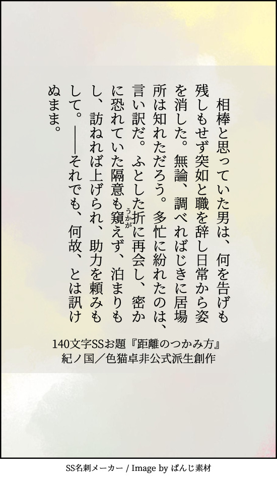 貴方は大正たけおので『距離のつかみ方』をお題にして140文字SSを書いてください。