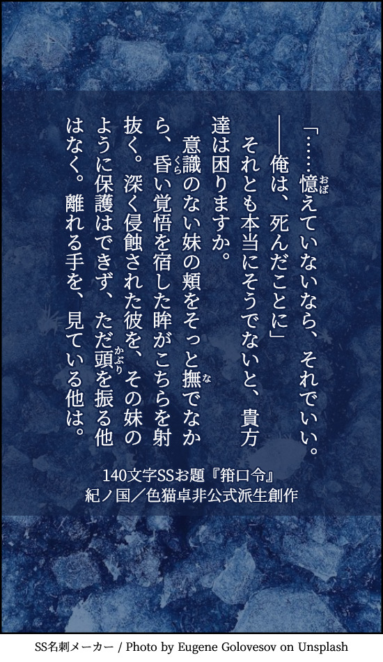 貴方は近衛兄妹で『箝口令』をお題にして140文字SSを書いてください。
