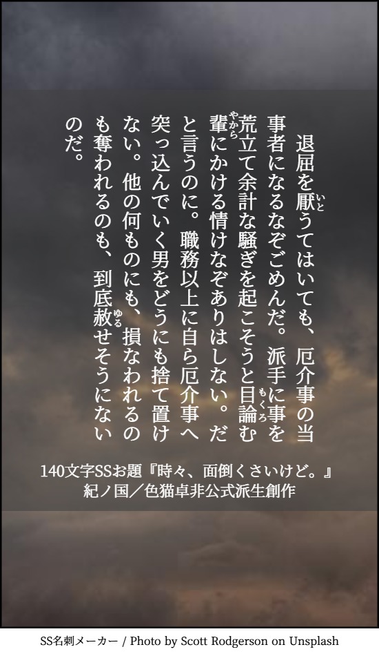 貴方は大正たけおので『時々、面倒くさいけど。』をお題にして140文字SSを書いてください。