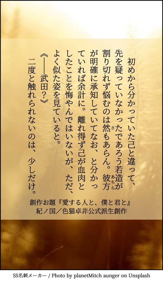 大正たけおのへのお題は『愛する人と、僕と君と』です。
