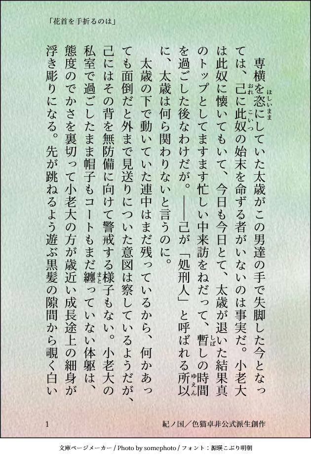 tr_imbtk☆quiet followDONEロレリダ「花首を手折るのは」色猫卓 サタスペ動画「ミッドナイト・スぺシアル」非公式派生創作「著:河嶋陶一朗と速水螺旋人と暗転丸と池田朝佳とイケダサトシと泉信行と魚蹴と岡野繁浩と齋藤高吉とdczとぺらねこと吉井徹/冒険企画局、新紀元社」が権利を有する『アジアンパンクRPG サタスペ』の二次創作作品 ##その他サタスペカプ show all(+1 images) Tap to full screen (size:630x928).Repost is prohibited Let's send reactions! freqpopularsnackothersPayment processing Replies from the creator Follow creator you care about!☆quiet follow tr_imbtkDONE貴方はのぎまきで『噂の二人』をお題にして140文字SSを書いてください。お題:shindanmaker.com/375517画像作成:sscard.monokakitools.net色猫卓 DX動画「Mythical Bloodline」非公式派生創作「著:矢野俊策/F.E.A.R.、KADOKAWA」が権利を有する『ダブルクロス The 3rd Edition』の二次創作作品 tr_imbtkDONE貴方は過去編たけおので『捨てられないガラクタ』をお題にして140文字SSを書いてください。お題:shindanmaker.com/375517画像作成:SS名刺メーカー sscard.monokakitools.net色猫卓 CoC動画 非公式派生創作「株式会社アークライト」及び「株式会社KADOKAWA」が権利を有する『クトゥルフ神話TRPG』シリーズの二次創作物 tr_imbtkDONE貴方はたけおので『こっちの台詞です』をお題にして140文字SSを書いてください。お題:shindanmaker.com/587150画像作成:SS名刺メーカー sscard.monokakitools.net色猫卓 CoC動画 非公式派生創作「株式会社アークライト」及び「株式会社KADOKAWA」が権利を有する『クトゥルフ神話TRPG』シリーズの二次創作物 tr_imbtkDONE貴方は大正たけおので『時々、面倒くさいけど。』をお題にして140文字SSを書いてください。お題:shindanmaker.com/587150画像作成:SS名刺メーカー sscard.monokakitools.net色猫卓 CoC動画 非公式派生創作「株式会社アークライト」及び「株式会社KADOKAWA」が権利を有する『クトゥルフ神話TRPG』シリーズの二次創作物 tr_imbtkDONE貴方は近衛兄妹で『唯一の』をお題にして140文字SSを書いてください。お題:shindanmaker.com/375517画像作成:sscard.monokakitools.net色猫卓 DX動画「Mythical Bloodline」非公式派生創作「著:矢野俊策/F.E.A.R.、KADOKAWA」が権利を有する『ダブルクロス The 3rd Edition』の二次創作作品 tr_imbtkDONEのぎまきへのお題は『欠けた愛を探してる』です。お題:shindanmaker.com/392860画像作成:sscard.monokakitools.net色猫卓 DX動画「Mythical Bloodline」非公式派生創作「著:矢野俊策/F.E.A.R.、KADOKAWA」が権利を有する『ダブルクロス The 3rd Edition』の二次創作作品 recommended works HoshiDOODLEアキヒカ ナースヒカルの治療 続き 4 miamako8DONE鬼舞炭👹🎴長編漫画『悲しみの連鎖を断ち切れるなら』鬼化・流血・グロ・捏造あり何でも許せる方向け⚠️最l終決l戦で無l惨勝利ifの内容となっています苦手な方はご注意ください99−105p 7 そめりDONEここにイラスト上げるのはちょっと久々。全部タップマンですが他のキャラもいます。もしかしたらCPに見える絵も混じってるかもしれませんが私はCPに描いたつもりはないのでCP絵は一応ありません。ただ単体できわどい絵なら少し入ってます。ふたなり注意報ですよ。 15 山田ΩDOODLE仲良くないころのぐれぶき 2 朔野@armonioso_xxxSPUR MEディアミリ本1冊目R18シーンサンプル(2025年2月種インパクト発行予定)書き上がったらと言っておきながら、再び尻叩きのために投下します。時期的なものでないどころか、真逆の季節感で申し訳ない。PASS:18歳以上? yse or no 2 saikaDONE2024/12/23サンドちゃんスキン捏造 インヨ少女DONE🍕とハイアサ🍕와 하이아서워터마크 제거 ver ウォーターマーク削除ver あいすDONECoC「実験体δは青を微笑む」True Endにて終幕 μいずきMOURNINGスカジェ 298