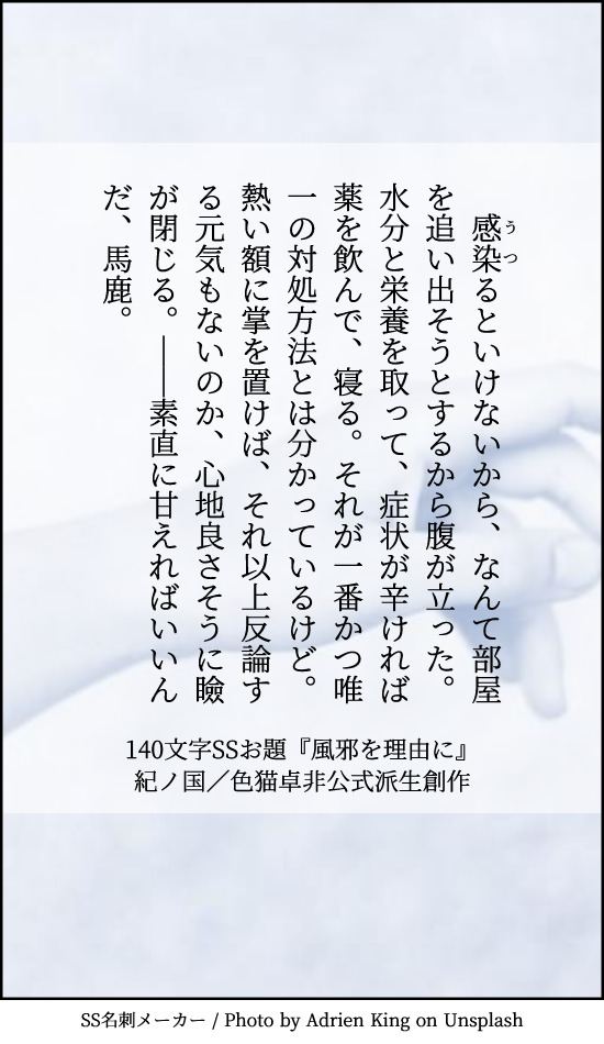 紀ノ国さんは『風邪を理由に』をお題に、140字でSSを書いてください。