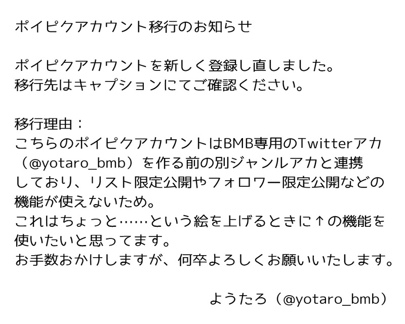 BMB用Twitterアカウント(@yotaro_bmb)と連携させるため、ポイピクアカウントを新しく登録し直しました