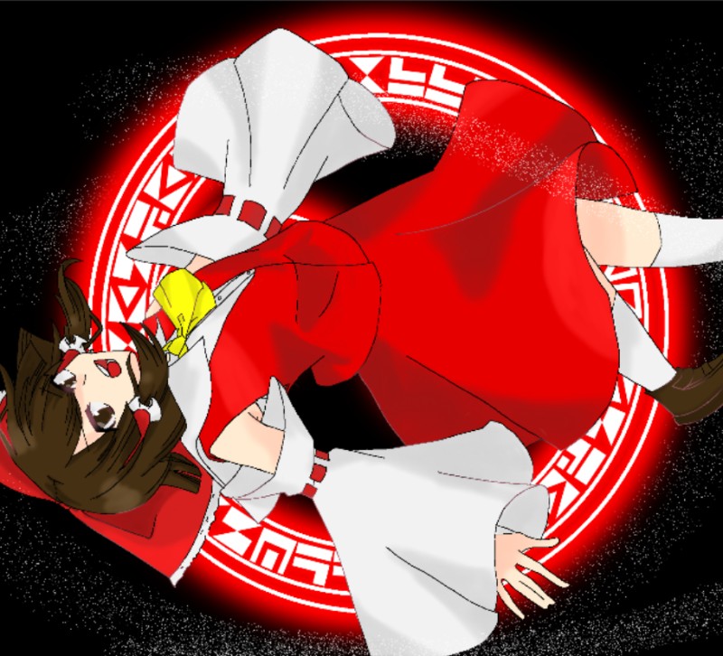 ちょっとうまくいった霊夢さん。謎の魔方陣を背負わせておきました(●´ω`●)