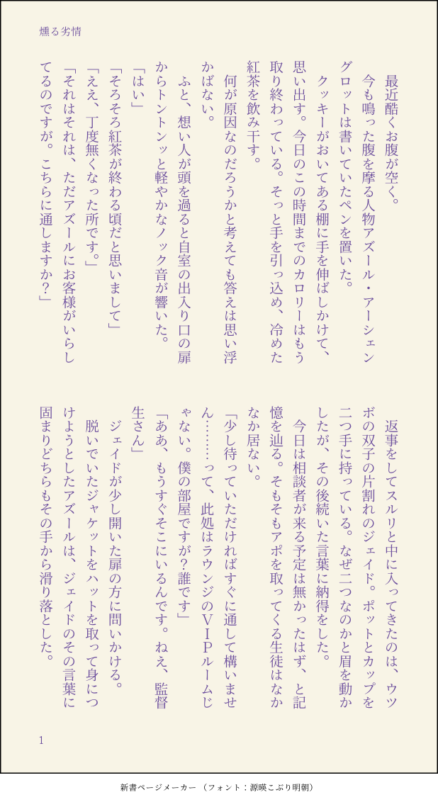 xx00yukihi00xx☆quiet followMOURNING書きかけ供養r-18にする予定がかけなかったアズ監♂️ #アズ監♂️ show all(+5 images) Tap to full screen (size:618x1132).Repost is prohibited Let's send reactions! freqpopularsnackothersPayment processing Replies from the creator Follow creator you care about!☆quiet follow xx00yukihi00xxDONE※事後感あり何でもない日の何でもない朝アズ監♂こんな時間が幸せだなーって話です。 2 xx00yukihi00xxDONEワードパレットお題でフロ監♂️🦈の嫉妬の話。 3 xx00yukihi00xxDONEワードパレットお題でアズ監♂️集中してるとき、周りの音が聞こえなくなるタイプの🐙に告白逃げをしていた監♂️が捕まる話。 2 xx00yukihi00xxDONEワードパレットお題でフロ監♂️甘い話を目指して。休憩室にていちゃいちゃするだけの話。 3 xx00yukihi00xxDONEあのカレッジリング話のときにカッとなって書き散らしたリング交換するアズ監♂️の話。 3 xx00yukihi00xxDONE両片想いのジェイ監♂️ずっと思いを隠してきた監♂️とそれを知らずにどうしても落とせない監♂️に楽しんでた🐬の話 5 related works ココノカSPOILER幻覚なので全くネタバレではないけど1072話の発言ネタ ちゃづDONE描いたやつその1※茨あん、ジュンあん 17 わたさくDOODLE きくちゃんDOODLEサタン様犬好きかと思いきやロクサーンみたいなパターンもあるのでやっぱ人外思考なのかな~ きくちゃんDOODLEサタン様犬好きかと思いきやロクサーンみたいなパターンもあるのでやっぱ人外思考なのかな~ 2watoyoDOODLE【朝のボールペン落書き】【日楠♀】【先天性女体化】日高先輩×男装後輩サキュバス家系楠ちゃん。海編。本当に気にしてるのは。 nnnnnnoodderaDONE【腐向け】チャバが酔ってハ崎さんに甘えてる漫画。ハ崎さんがトイレに行くのを我慢していたりする。 4 ちゃづDONE描いたやつその1※茨あん、ジュンあん 17 べこDOODLEピンク色のバレンタインなヨウグズ🍫