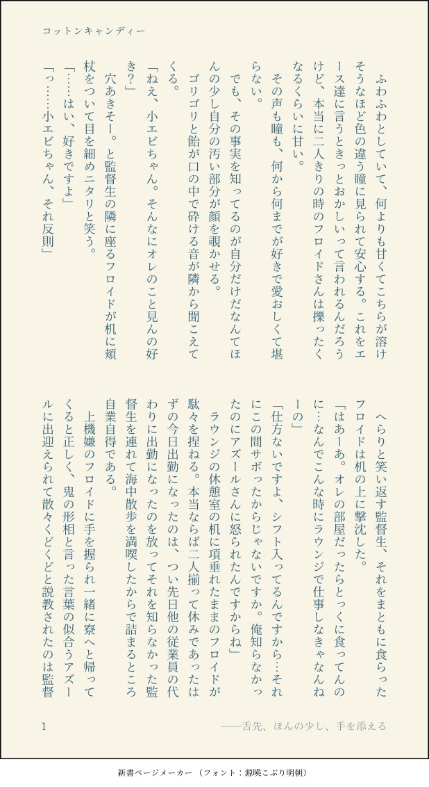 xx00yukihi00xx☆quiet followDONEワードパレットお題でフロ監♂️甘い話を目指して。休憩室にていちゃいちゃするだけの話。 #フロ監♂️ show all(+2 images) Tap to full screen (size:618x1132).Repost is prohibited Let's send reactions! freqpopularsnackothersPayment processing Replies from the creator Follow creator you care about!☆quiet follow xx00yukihi00xxDONE※事後感あり何でもない日の何でもない朝アズ監♂こんな時間が幸せだなーって話です。 2 xx00yukihi00xxDONEワードパレットお題でフロ監♂️🦈の嫉妬の話。 3 xx00yukihi00xxDONEワードパレットお題でアズ監♂️集中してるとき、周りの音が聞こえなくなるタイプの🐙に告白逃げをしていた監♂️が捕まる話。 2 xx00yukihi00xxDONEワードパレットお題でフロ監♂️甘い話を目指して。休憩室にていちゃいちゃするだけの話。 3 xx00yukihi00xxDONEあのカレッジリング話のときにカッとなって書き散らしたリング交換するアズ監♂️の話。 3 xx00yukihi00xxDONE両片想いのジェイ監♂️ずっと思いを隠してきた監♂️とそれを知らずにどうしても落とせない監♂️に楽しんでた🐬の話 5 related works 2watoyoDOODLE【朝のボールペン落書き】【日楠♀】【先天性女体化】日高先輩×男装後輩サキュバス家系楠ちゃん。海編。本当に気にしてるのは。 ちゃづDONE描いたやつその1※茨あん、ジュンあん 17 きくちゃんDOODLEサタン様犬好きかと思いきやロクサーンみたいなパターンもあるのでやっぱ人外思考なのかな~ ココノカSPOILER幻覚なので全くネタバレではないけど1072話の発言ネタ nnnnnnoodderaDONE【腐向け】チャバが酔ってハ崎さんに甘えてる漫画。ハ崎さんがトイレに行くのを我慢していたりする。 4 わたさくDOODLE きくちゃんDOODLEサタン様犬好きかと思いきやロクサーンみたいなパターンもあるのでやっぱ人外思考なのかな~ ちゃづDONE描いたやつその1※茨あん、ジュンあん 17 べこDOODLEピンク色のバレンタインなヨウグズ🍫