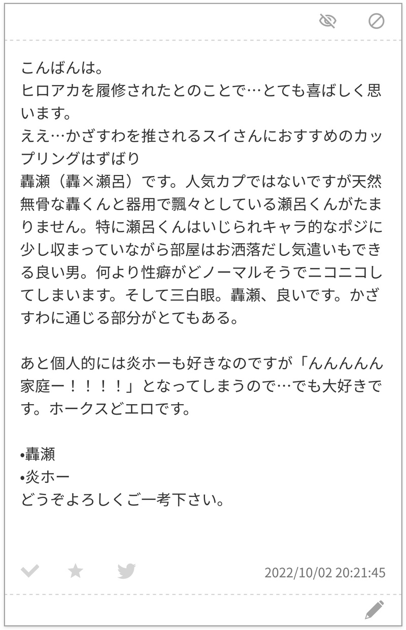 sooey16☆quiet followMEMO遅くなりましたがお返事です! show all(+1 images) Tap to full screen (size:1125x1746).Repost is prohibited Let's send reactions! freqpopularsnackothersPayment processing Replies from the creator Follow creator you care about!☆quiet follow sooey16MEMO遅くなってしまい済みません!おへんじです! 2 sooey16MOURNINGいつか書きたいやつ。ついったに投稿したことある気がするな。 435 sooey16MOURNING 456 sooey16MEMO遅くなりましたがお返事です! 2 sooey16MOURNINGもはや自分用。かざすわモーメント 23 sooey16MOURNINGいぬかげモーメント退避 5 recommended works HoKUUUUUUUtoDOODLE(風諏訪)口腹之欲⚠️NSFW 2 nininishikoDOODLE風諏訪まとめ 9 撸君kazekaoruDOODLE 五远弗届DOODLE肯尼阿尼…但这里肯尼没有人格只是承担了一个无脸男的作用……对不起老舅但你太好用了对不起🧎♀️我忏悔 2 餅右衛門TRAINING魔女 ベチカDOODLEアシュレイの脇からおてていれちゃうよそさまの絵たちが良すぎて頭から離れず、レオーネにやってみましたちなみに文字「寒い寒い寒い寒い寒すぎ無理いいい もうしぬまじでしぬほんとしぬ ゴダ倒す前に俺がしぬ 何が冬山修行だクソババア絶対殺す 助けてレオーネ」です殺すは良くなかったなぁと反省してますがクソババアは言わせたかったです(正直)続きはカプリコさんの続きネタお借りして描きました🙏✨ 2 unaunaunaNDOODLE悪辣げんみ❌ほよんのらくがき、出会いのやつ 3 truecrusherDOODLEgirl turns into an owlpassword: 0w1 4 late_late121DOODLE正イデげんみ❌ 自陣⭕️新帆光
