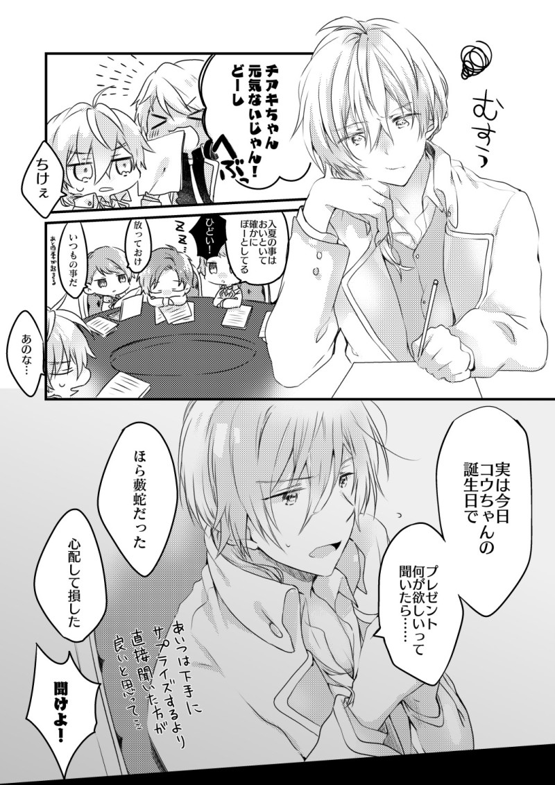 コウちゃんには下手にサプライズするより、本人の欲しいものをあげたほうが失敗しないことを学んだ千秋が「何がほしい?」と聞いたら「なんでも言うこと聞いてくれそうな都合のいい先輩ですかねー」と言われて