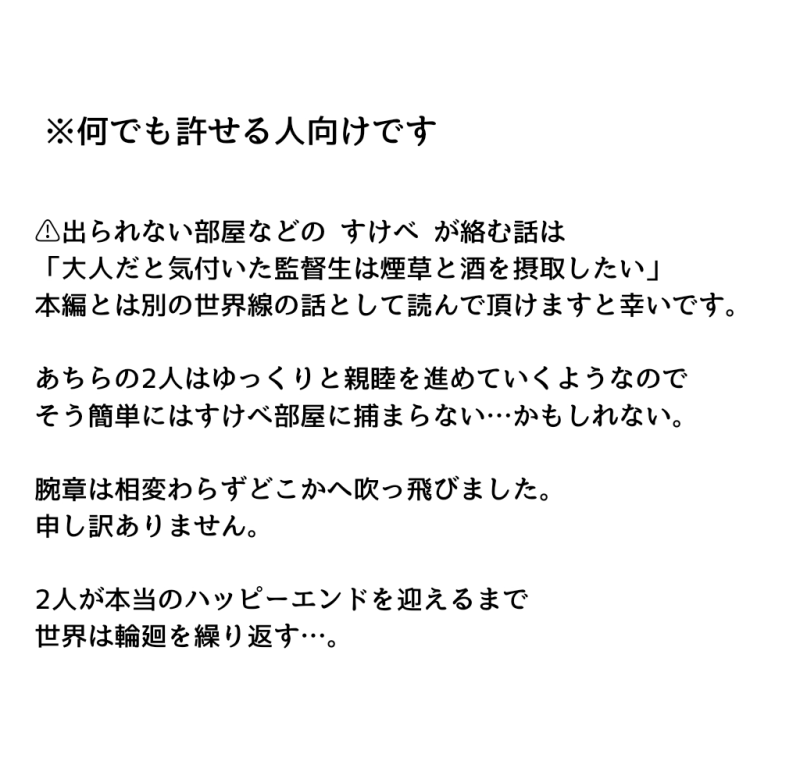 いりぷん☆quiet followDONEジャミ監♀🐍🌸(付き合ってない)の媚薬を19本飲んで○回○かないと出られない部屋監ちゃんの中身は大人設定。※本番無し🔞です※監督生顔あり喋る⚠️閲覧・またその後に問題が生じた場合の責任は一切負いません⚠️⚠️あなたは18歳以上高卒済みですか?⚠️y/n #ジャミ監 jamiAuditor #twstプラス twstPlus show hide show all(+7 images) Tap to full screen (size:1024x975).Repost is prohibited Let's send reactions! freqpopularsnackothersPayment processing Replies from the creator Follow creator you care about!☆quiet follow いりぷんDONE「その話はいいから」14P+αの漫画です。🌸がスカート、女子高生!※ ジャミ監♀顔あり喋る🐍🌸※🔞本番あり#夜のtwstプラス⚠️閲覧・またその後に問題が生じた場合の責任は一切負いません⚠️⚠️あなたは18歳以上高卒済みですか?⚠️y/n 16 いりぷんDONEゆう鬱な監督生の幕間※何でも許せる方向けです!※ジャミ監♀🐍🌸(付き合ってない)※前半ゆう鬱後半ハッピーです※顔あり男装監督生喋る#病みのtwstプラス #twstプラス 9 いりぷんDONE髪を解きたかったんだ…🐍🌸※ ジャミ監♀本番あり🔞※男装監督生♀顔あり喋る#夜のtwstプラス⚠️閲覧・またその後に問題が生じた場合の責任は一切負いません⚠️⚠️あなたは18歳以上高卒済みですか?⚠️y/n 12 いりぷんDONEなんと、セ出部屋ではない🐍🌸※ ジャミ監♀本番あり🔞※男装監督生♀顔ありデフォ名喋る#夜のtwstプラス⚠️閲覧・またその後に問題が生じた場合の責任は一切負いません⚠️⚠️あなたは18歳以上高卒済みですか?⚠️y/n 5 いりぷんDONEキスしないと出られない部屋※ ジャミ監♀🐍🌸🔞※男装監督生♀顔あり喋る#夜のtwstプラス⚠️閲覧・またその後に問題が生じた場合の責任は一切負いません⚠️⚠️あなたは18歳以上高卒済みですか?⚠️y/n 7 いりぷんDONE作業妨害ねこ系ジャミ・グリ坊ほっこりしていってね!※ ジャミ監♀🐍🌸?グリ監♀😺🌸?※男装女監督生喋る 3 related works No_464MENU【R18】レオ監♀チュロス本▼通販🐯とらのあな:https://bit.ly/3yj97Tk▼詳細「いっちょまえにガキ作れる身体なんだよ 俺もお前も」ポートフェストの準備をするレオナと監督生。チュロスのチョコが監督生のシャツに垂れたのをきっかけに、二人きりの調理室でエッチしちゃいます。 13 No_464MENU【R18】レオ監♀性教育本▼通販https://bit.ly/3rvNYRW▼詳細監督生とのセックスにマンネリを感じてきたレオナ。そこで思いついたのは、後輩であるジャックとラギーに「性教育」と称して、二人の前で監督生とセックスすることで…!?ツイステ世界での性生活に関するハウツーページつき。ジャックとラギーが監督生♀をオカズにオナニー・射精します。 10 No_464MENU【R18】🦁🚺再録本1⃣▼通販🐯とらのあな:https://bit.ly/3cT2XgU🧀フロマージュ:https://bit.ly/36t8wBC▼詳細web再録(一部加筆修正/カラー6ページ)+新規36ページ(漫画4本&スケベネタ)を収録。女夢主は、生徒(レオ監)/保健室の先生/性処理メイドなど。レオナとのいろんなエッチをお楽しみください♪ 31 kinoPAST⚠️🔞注意⚠️🦇先輩と自室でのお勉強५✍ 1419 イシノシタダンゴムシDONER18トレ監(?)漫画注意書きを確認の上お読み下さい。パスワード🔑あなたは成人していますか?[yes ] or [no] 12 No_464MENU【R18】レオ監♀新婚本▼通販https://bit.ly/3vCHssU▼詳細子作りに向いたエッチなカラダをしているという理由でレオナの実家に嫁入りすることになった監督生。授乳と子作りがしやすいキングスカラー家の伝統衣装を身に纏い、レオナとの子作りえっち漬けの生活が始まる… 20 usamimix_maniaDONE【R15/カリ監♀】肌色注意。ちくバン漫画その1※監顔有り#カリ監#夜のtwstプラス#twstプラス yumaDONEフロ監webイベ展示でした⚪︎全年齢⚪︎ 1.7インテ無配再録【ウツボの王子様】🦈🦐⚠︎マフィアパロ⚠︎ユウ呼び有り⚠︎突然始まって突然終わります 8 EnemyDONE【うちのジェイ監♀ 妄想】めちゃデカクソデカメガ盛りビックでダイマックス激重感情なジェイドと男装監督生(ユウ)恋人の座を勝ち取るまでにめちゃくちゃ苦労(監の方が3章4章の件やら普段の行いのせいやらでジェイドに対する信頼度が皆無だった)したのもあって付き合いだしてから毎日好き好き大好き愛してるな激甘で四六時中一緒に居たいって思っちゃうジェイドもいいなって思いました、まる recommended works 藤菱古頼DONE spice_twstDOODLE足ドンジャミ監ラクガキ たまゆりMAIKING伊勢エビと小エビが同じ棺から出てきた話今のところカプ要素なし・コミ監とアプリ監(女の子設定)のクロスオーバー・コミカライズのネタバレを含みます・全部妄想・続くかも! 5 まめこあけびDONE不穏ぽくも見えるけど、喧嘩して雨の中飛び出した監を追い掛けただけこのあといちゃいちゃしますワンドロお疲れ様でした!来週は過去の自由お題!原稿で描けなかったやつのどっちかでいきたいと思います~!! ちりむくDOODLEフロイドとnot監督生のシキ。フロイド呼びは ヤドカリちゃん。 hutachaSPOILERしずらぎですけべ“してます”。
