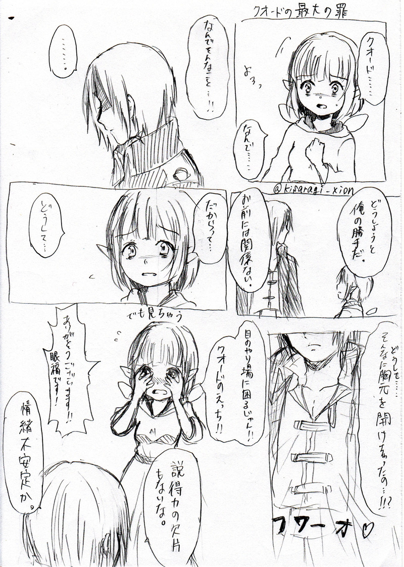 おしんこ @kisaragi_xion ツイッター@kisaragi_xionのイラスト投稿アカウントです。主にドラクエXの絵とか漫画。クオ主♀、兄主♀、その他主♀受けあり。 ☆quiet follow Yell with Emoji POIPOI 98
