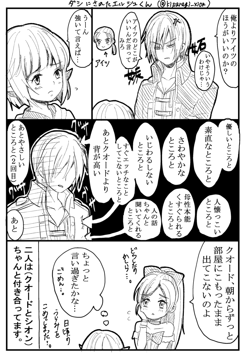 おしんこ @kisaragi_xion ツイッター@kisaragi_xionのイラスト投稿アカウントです。主にドラクエXの絵とか漫画。クオ主♀、兄主♀、その他主♀受けあり。 ☆quiet follow Yell with Emoji POIPOI 98