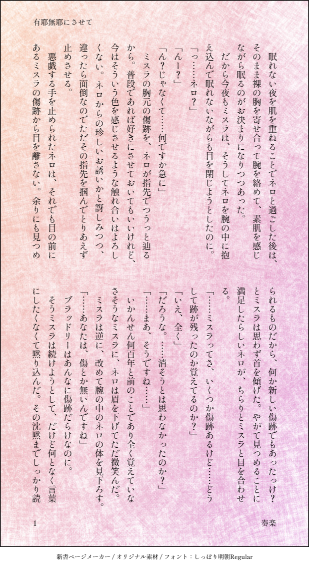 奏楽(そら)☆quiet followDONEミスネロワンライ・お題「傷跡」 ##ミスネロ show all(+3 images) Tap to full screen (size:618x1132).Repost is prohibited 奏楽(そら)DONEブラネロワンライ・お題「熱」「強がり」「近くて遠い」 4 奏楽(そら)DONEブラネロワンライ・お題「飯屋」「こっちを見て」 6 奏楽(そら)DONEファウネロワンライ・お題「ご褒美」 4 奏楽(そら)DONEファウネロワンライ・お題「叱る」「そばにいて」 7 奏楽(そら)DONEミスネロワンライ・お題「共同作業」 6 奏楽(そら)DONEブラネロワンライ・お題「突然」「それは反則」 5 recommended works ちあ基地RDOODLE🎥練習 ※🎨🎥前提 hiji_or_hizaPROGRESS鶴宇佐原稿進捗🔞エッチなやつとかグロめ(絵文字で隠してます)のやつとか※4枚目モブ宇佐です(鶴に見られながらモブちんぽ挿れる宇)全ページ線画やってから塗るタイプなので進捗が線画状態になりがち 6 そると🧂DONEホワラ🤍❄️2017年Mステスーパーライブのこの衣装大好き!(※背景はテキトーなフリー素材です) おたまDOODLEプニすけかわいかった(*'▽') 岸川珪花TRAINING🏠🖋️(2025/01/13) BaO9iDOODLE人外ちくがいます 3 kibisabikiDONEサニー♀(ケルもちょっとだけ)初アップのテストも兼ねて18↑?(y/n) red_777333DOODLE Sen3denDOODLE未だに時折、高橋キリコ先生の幻影がよぎる。※幻覚。捏造ビジュアル。 4