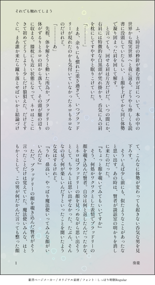 奏楽(そら)☆quiet followDONEブラネロワンライ・お題「後悔」 ##ブラネロ show all(+3 images) Tap to full screen (size:618x1132).Repost is prohibited 奏楽(そら)DONEブラネロワンライ・お題「熱」「強がり」「近くて遠い」 4 奏楽(そら)DONEブラネロワンライ・お題「飯屋」「こっちを見て」 6 奏楽(そら)DONEファウネロワンライ・お題「ご褒美」 4 奏楽(そら)DONEファウネロワンライ・お題「叱る」「そばにいて」 7 奏楽(そら)DONEミスネロワンライ・お題「共同作業」 6 奏楽(そら)DONEブラネロワンライ・お題「突然」「それは反則」 5