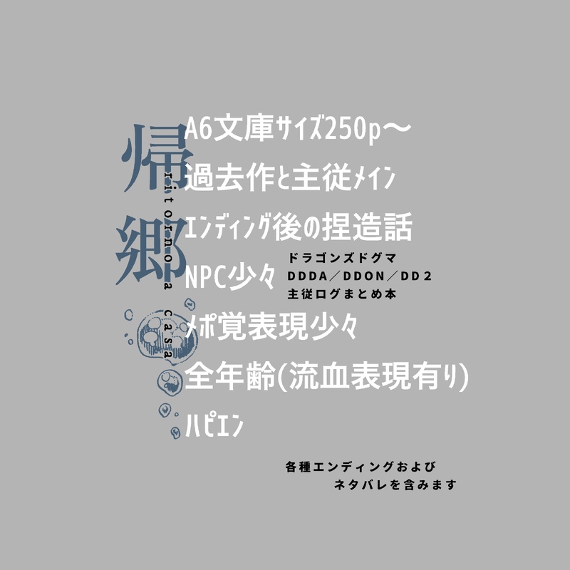 79520B☆quiet followPROGRESS主従本、しんちょく置き場真エンディング後の捏造の話を含みます全部私向けのため配慮があまりありませんたまに更新される 最終更新日:2025/04/20 #ドラゴンズドグマ dragonsDogma show all(+129 images) Tap to full screen (size:2622x2622).Repost is prohibited Let's send reactions! freqpopularsnackothersPayment processing Replies from the creator Follow creator you care about!☆quiet follow 79520BSPOILER・ドラゴンズドグマ2、および無印のエンディングのネタバレを含みます。ゲームを最後まで存分に楽しまれてからお読みください。・エンディング後の捏造と祈りと自己解釈だけで構成されています。・NPCや世界観に対する解釈が私向けです・原作程度の暴力・流血表現あり・CP表現は皆無ですが書いている人はメポ覚だったら嬉しいな(懊悩)のスタンスなのでそう見えることもあるかも・長い 56650 79520BPROGRESS主従本、しんちょく置き場真エンディング後の捏造の話を含みます全部私向けのため配慮があまりありませんたまに更新される 最終更新日:2025/04/20 130 79520BPROGRESS無印のエンディングネタバレを含むよ 3 79520BPROGRESS途中までです 17 79520BPAST無印エンディングのネタバレがあります 9 79520BMOURNINGドラゴンズドグマ、あるエンディング後のベルントくんの話。ネタバレと捏造を含みます。弊世界のベルントくんはおぼじゃのことが世界で一番好きだった男になってしまった。2周目は傭兵をデートに誘ってみます 6 related works ☕(ジャンルごった煮)DONE主従絵今日はDDDA7周年という事で、色塗りして仕上げました。DDDA7周年おめでとうありがとう!! isma_thenoirPASTDDON漫画[ハロウィン2022]イラスト 6 苺まーぶるDONEドラゴンズドグマ1で遊んでるいつものオリキャラです!!覚者アロネ君とポーンサンドちゃん。ほのぼの主従です☺️ isma_thenoirPASTDDON漫画[END] 4 ☕(ジャンルごった煮)DOODLEお試しも兼ねて初投稿。自分の覚者、カーネリアスです。 isma_thenoirDONEDD2とDDONとDDDAの1ページ漫画集。新しく描いたら増えていきます。 14 isma_thenoirPASTDDON漫画[ブリアビーチ] 4 isma_thenoirDONEドラゴンズドグマ[周年イラスト・グッズいじり・ファンミ・CAPCOMショーケースなどイラスト] 19 ☕(ジャンルごった煮)TRAININGキナ#ドラゴンズドグマ recommended works nekDONE #comico「#おぼろげに」#カウリ#現パロ #スーツ #メガネ nobunaga49DOODLEデニムのミニスカとか好き。サウのタンクトップをダサく描きすぎた感は否めない。後はパイ乙大きいの。 3 蟹SUNPASTWEB再録。現パロ悠脹本『お兄ちゃんは何も知らない』(2021.4.25)の描き下ろし部分です。平和な現代で実の兄弟の悠脹です。会社員脹相と春から大学生悠仁。何夜もかけて兄の胸をいじる話。恥じらい・感度ともにゼロからのスタートです。◎挿入なしR-18本 23650 ゆき📚DONE【sngk】【ジェリーフィッシュが解ける頃】Ⅳ続きました。現パロです。諦める事は無い大学生とその同級生&情緒ががったがたな会社員とその同僚があーだこーだとそれぞれ話しております。割合的には社会人組の比率が高いです。相変わらず諸々雑な感じですが大丈夫、どんなものでもどんとこい!な方よかったら読んでやってください 9269 sikou_ga_maigoMAIKING1話→https://www.pixiv.net/novel/show.php?id=159661182話→https://www.pixiv.net/novel/show.php?id=15966185 2724 sky_yurattoDONE※ファンタジーパロ 現パロ 擬人化(notホシのコ)『捕らわれの姫騎士は魔法使いから逃れたい』 2741 q( ゚Д゚)bMEMOコラボカフェのスーツとドレスの花寧々から思いついた現パロ幼なじみ設定のあまねねメモ。書き出しはこんな感じ。急ぎで書かなきゃいけない原稿があるのに私は何をしてるんだろうね。 351 parvus_yuuMEMO現パロなれそめ、とりあえずこれで完了!全然まとまらなくて、3ヶ月もかかった…webオンリーでウォロシマ成分を摂取してここまではたどり着きました!ありがとうございます!前回からの続きっぽく始まります…。一応『現パロなれそめ』でタグ分けはしたので、もしよろしければ見ていただけると嬉しいです。(本にする時は前回と合体させます…) 1751 isma_thenoirDONEあつ森のイラストと漫画。※DDONの覚者とポーンが無人島生活しています。 7