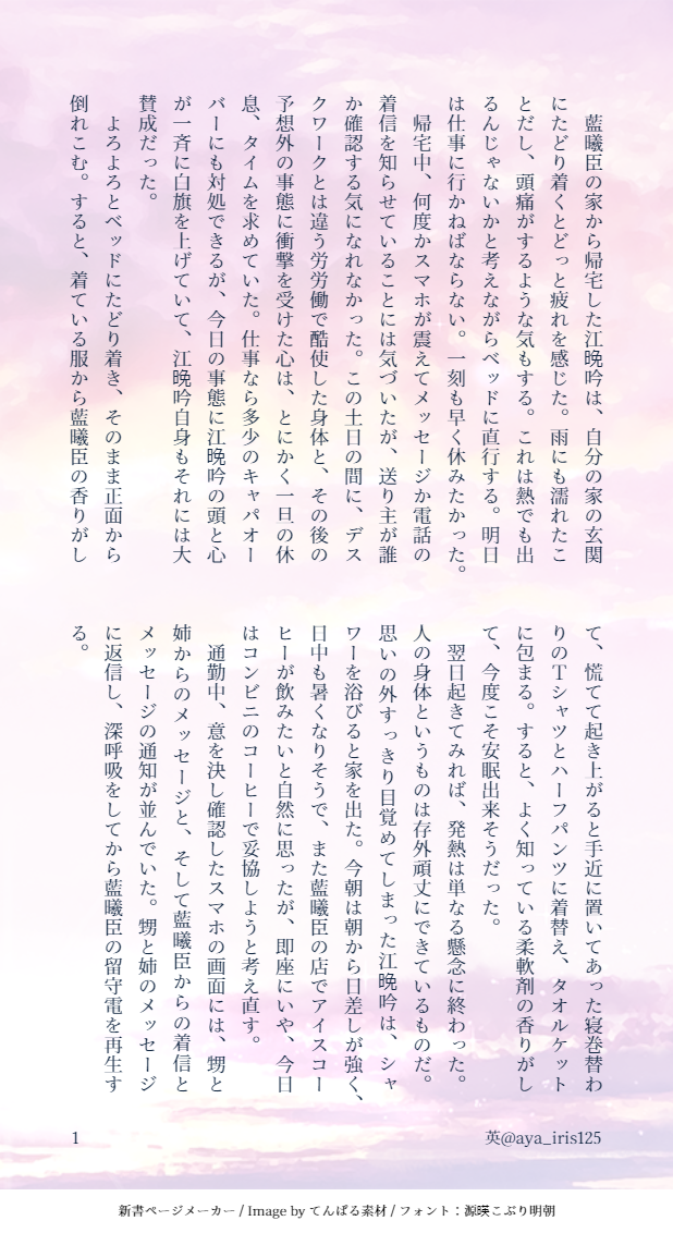 英(aya)☆quiet followDONE【現代AU】コーヒースタンドオーナー兄上×働き過ぎなリーマン澄7.5夏祭り編↓の続きです。https://poipiku.com/2474980/7258576.html show all(+11 images) Tap to full screen (size:618x1132).Repost is prohibited Let's send reactions! freqpopularsnackothersPayment processing Replies from the creator Follow creator you care about!☆quiet follow 英(aya)DONE曦澄ワンドロワンライ第116回お題:詩 2384 英(aya)DONE【曦澄】第112回ワンライのお題「水浴び、泳ぐ」を加筆修正の上、たまゆらさんとのお話を参考に書いた続きです。たまゆらさんがポストされた内容も参考にさせて頂いています。(許可いただき済)***更に加筆修正(加筆部分は8P目以降)したので差し替えました。今度こそおしまいです。 11 英(aya)DONE以前途中まで公開していたお話を3/21-23のイベントに合わせ完結させました。【現代AU】曦澄江澄が勤める会社に転職してきた藍曦臣。彼が水をかけられたところを助けた江澄は、食事に誘われて… 31 英(aya)DONE【現代AU】社長の兄上×ホテルウェイターの澄の話⑨ 17 英(aya)DONE【現代AU】デパート勤務の兄上×カメラマン澄ジンイー君視点で、スージュイもいます(CP要素は無し)七五三のある世界です。 6 英(aya)DONE【現代AU】同じ会社の営業部兄上×経理部澄の曦澄未満のお話です。後半は夕方に。→後半載せました。5ページ目以降が後半です。 9 recommended works StarlingsMEMO 8 anzDOODLE※女体化🧹姉上にチア着せたら…という欲望落書き veryRrikkaSPOILER⚠️先行軍師のネタバレです⚠️あまりにも思いが募って気持ちを書いてます。ご注意ください。本当に本当に見ますか?見る方は、パスワードにyesyesと入力してください。 4 YunaDOODLE체이스 속박플.. 방치플.. 예쁜 속옷..비밀번호 : 18↑ [yes/no] 宮田カヨ(ほうせんか)SPUR ME学BASA基準の松慶その1※戦バサオリジナルがいる 2 pankiji1220DOODLE鰯と柊 現行未通過❌チイチャ 2 yurikoniccDOODLEフォロワーさんの好きカプを勝手に描く③シロうら 雪風(ゆきかぜ)。DONEもふもふ翠くん💕 2 HarutoraDOODLE 5