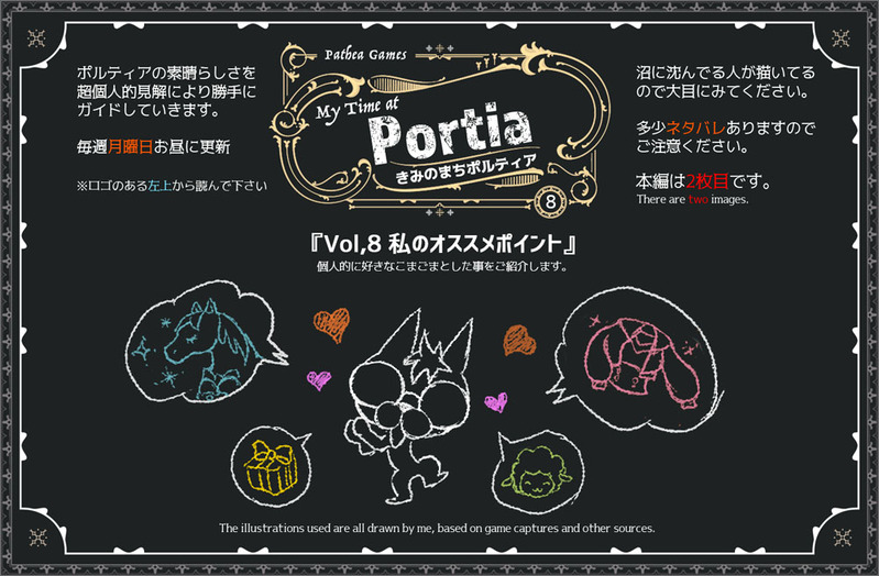 MisaTutui☆quiet followDONE【Vol.8】まだまだいっぱいあるお気に入りの小ネタを色々ご紹介します。今回でポルティア全体の紹介は終わり。いよいよ次週から住民の紹介がスタートです。「きみのまちポルティア」開発 PatheaGames 販売 Team17https://store.steampowered.com/app/666140/My_Time_At_Portia/ #ゲーム game #ポルティア portia show all(+1 images) Tap to full screen (size:1000x656).Repost is prohibited Let's send reactions! freqpopularsnackothersPayment processing Replies from the creator Follow creator you care about!☆quiet follow MisaTutuiDONE【Vol.14】いよいよ最終回となりました!最後までご覧頂いた方、リアクションを入れてくださった方、本当に有難うございました!Two drawings. Thank you for a great game!「きみのまちポルティア」開発 PatheaGameshttps://store.steampowered.com/app/666140/My_Time_At_Portia/ 2 MisaTutuiDONE【Vol.13】今回はポルティア独特の世界観「過去の遺物」に対しての考え方で対立する2つの団体の住人をご紹介。衝突はしているけれど、どちらも国のためになると信じて活動しているんだよ。「きみのまちポルティア」開発 PatheaGames 販売 Team17https://store.steampowered.com/app/666140/My_Time_At_Portia/ MisaTutuiDONE【Vol.12】この勝手にガイドも残すところあと2回!今回からワンクッションないけどネタバレ注意です。ポルティアの住人はみんな大好きで選抜が難しいんや....。「きみのまちポルティア」開発 PatheaGames 販売 Team17https://store.steampowered.com/app/666140/My_Time_At_Portia/ MisaTutuiDONE【Vol.11】今回はポルティアにもやっぱりいる可愛いモフモフたちをご紹介します。牧場系ゲームにはなくてはならないわんことにゃんこも親密度が高まるとめっちゃ可愛い姿が見れるのです。うふふ。「きみのまちポルティア」開発 PatheaGames 販売 Team17https://store.steampowered.com/app/666140/My_Time_At_Portia/ 2 MisaTutuiDONE【Vol.10】なんと勝手にガイドも10回目。今回は色々とお世話になる診療所の皆さんと仲良し3人娘のご紹介。色々伝えたい話があるのだがネタバレになるので言えない。言いたい。ああ.......。「きみのまちポルティア」開発 PatheaGames 販売 Team17https://store.steampowered.com/app/666140/My_Time_At_Portia/ 2 MisaTutuiDONE【Vol.9】今回から住民の紹介がスタート!恋愛対象キャラクターを中心にご紹介していきます。住民のプロフィールは必要最低限に抑えてますが、ゲームを進めるにつれて分かることが多いので「全部自分で知りたい」って人は注意!「きみのまちポルティア」開発 PatheaGames 販売 Team17https://store.steampowered.com/app/666140/My_Ti 2 related works es2520DOODLE時間という時間を吸い尽くす恐ろしいパズルゲームbaba is youをやっている しょうかPASTトロが人間になりたいって可愛かったから 音速酢飯(うひょ)DOODLE そりゃソーダPROGRESSひょっこり初期刀 はなまるFXDONEスマホゲームに熱中(*‘∀‘) Do not Repost・東龍DONEセブドラ無印のサムライさん。 policyjapanPASTボンバーマン適当に描いたもの しょうかPASTDMSのポンちゃん 律@雑多絵PAST去年、身内にあげたバレンタインイラストはmoonのキャラでした 2 recommended works 桃次郎DOODLE初描きニーナ。アースラも好き。 ましゅうMAIKING緑を塗るのが苦手すぎる 2 しょうかPASTアイナナの大和 ぎっさDONE原作の紫色がすごくきれいだけどその雰囲気を出すのが難しい… 畔戸 にこDONEほのぼの闇の一党 10 希魔姫PAST1日1回絵を晒す。ギルティギアのメイちゃん。とっても大家族な子。 そりゃソーダCAN’T MAKEわっかんね そりゃソーダDONEクロ主でお休み ぽぷりDONE一度描いてみたかったコウペンちゃんとニンテン☺️上げ直し何度もすみません…😂
