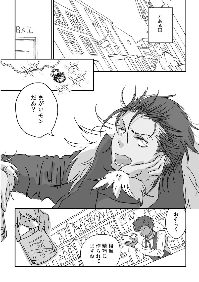 23/04/29開催BMB「キミとじゃなければ」で展示した、アロとバーテンダー(※)の知り合ったきっかけを好き勝手に想像した漫画。