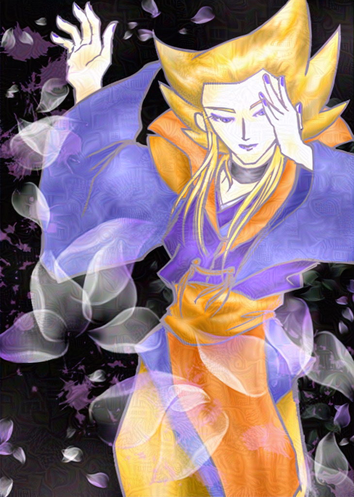 コウキンといえば元ネタさん属性に「美形」があるわけですけど、憶測ですが、時代とともに美形パラメーターがガンガン伸びてってるんだろうと思ってるのもあってですね。なので、普通の美形じゃない = たんびー → どこぞの金髪・紫な耽美の化身のあの御方、みたいな事故が脳内で起こり、結果こんなことにウボァー