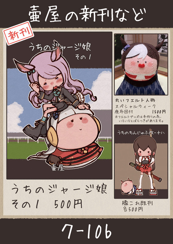 mqube015☆quiet followMENUC100日曜日ク-10bですー参加できたらよろしくー #C100 #ウマ娘 umamusume #艦隊これくしょん armadaKakushon Tap to full screen (size:566x800).Repost is prohibited Let's send reactions! freqpopularsnackothersPayment processing Replies from the creator Follow creator you care about!☆quiet follow mqube015DOODLEガチャガチャしたけどダンツフレーム来なかったよー mqube015DOODLE蒼きアズライールとかいう人が怪しく思えたんですよ、詳しくないので宝具とか間違ってたら教えてね mqube015DOODLE艦隊これくしょんのメンテナンスが長いらしかったのできっと蒼龍飛龍の大規模改修があるに違いないと思います。 mqube015DOODLEきびきびダンスのボールペン欲しくなってきたのでゼイユ mqube015DOODLE今日はスポーツの日らしいので脈絡のないステイゴールド mqube015DOODLEシングレをみたよー笠松組が良かったです related works 高梨佐奈@夏コミ休みますINFOC100当選してました1日目東ソ36aにて僕と握手!この他にも別のイベントで出してる創作TS本とショタ本があります来てねhttps://webcatalog.circle.ms/Perma/Circle/10438252/ 青(あお/青沼工郎)INFO夏コミ合わせ新刊の通販が始まりましたカカイル♀夫婦本B5判48P・成年向表紙・本文見本15P、及び詳細https://www.pixiv.net/artworks/100348990・冊子版(表紙カラー、本文モノクロ)・DL版(ちょっと色付き)・冊子+DL お得なセット取扱いはメロンブックス・フロマージュさんの委託とBOOTH通販です。よろしくお願いします!┏○)) mqube015MENUC100日曜日ク-10bですー参加できたらよろしくー matsuDONEC100 綱茨、新刊サンプルです。よしなに〜*****8/14(日) 東4ホール ヨ49b四季咲書房 / まつA5 / 24p / 全年齢 / ¥700※お一人様一部までのご購入となります 5 matsuPAST初の綱茨本が完売してましたので御礼ということで当時オマケでつけていたペーパーをば 2 noet noetSPUR ME食声R18作業進捗 まことDONE新刊サンプル出来ました!脱稿しました!新刊でるぞー! 3 saku_minINFO夏コミお品書きできたのでこっそり上げておきますー。SideMドラスタでほのぼのまんがを新刊で作りましたー シン/今年もプロメア見れる嬉しいDOODLE㊗️コミックマーケット100開催!1日目のリストバンドはむにゅとガロちゃん色やで!#C100 recommended works mqube015DONEおうちで遊ぶ子 mqube015DONE節分だったらしいですよ! hatu__simoDOODLEウマ娘7話みた。淀の刺客ちゃん。宝塚記念が来るのが怖いですね…。 こもるDONEスーパークリークちゃん!!!💕初描きでした 2 yuzuDTBDONEトレーナーさん、約束のいいこいいこの時間ですよ〜 yagorogoro85MAIKINGとちゅう クソ陰キャDOODLEウマ娘/ナイスネイチャちゃん 6 KOTO15_DOODLEウマ娘は結構前にゲームDLしたものの、一から新しいゲームのルール覚えるにも、モンハンもFGOもやってるのでメモリ不足で数分でKOとりあえず先週位からアニメを見ました泣ける…熱い…すごい…走りはサイレンススズカが好きですキャラはゴルシかなスピカメンバー不足の時も一人残ったり「あんたの人生(省略)…」のセリフがいいね人参やその他のご飯がおいしそうに見える。人参かじりたくなるアニメ。 mqube015DONEメガネを選ぶ時、自分で自分が見えない問題