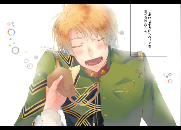 はる6の秋兵さmm。たまには可愛い感じにシベリア食べて欲しいと思ったらただのあーんしてるやつ(物理)になってしまったなんでだ。