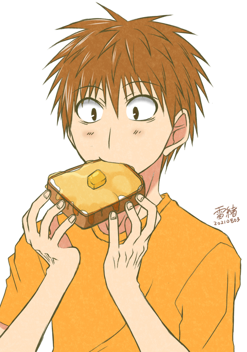 間に合わなかったけど、8月3日ハチミツの日ということで、ハチミツたっぷり塗ったパンを食す降旗君。