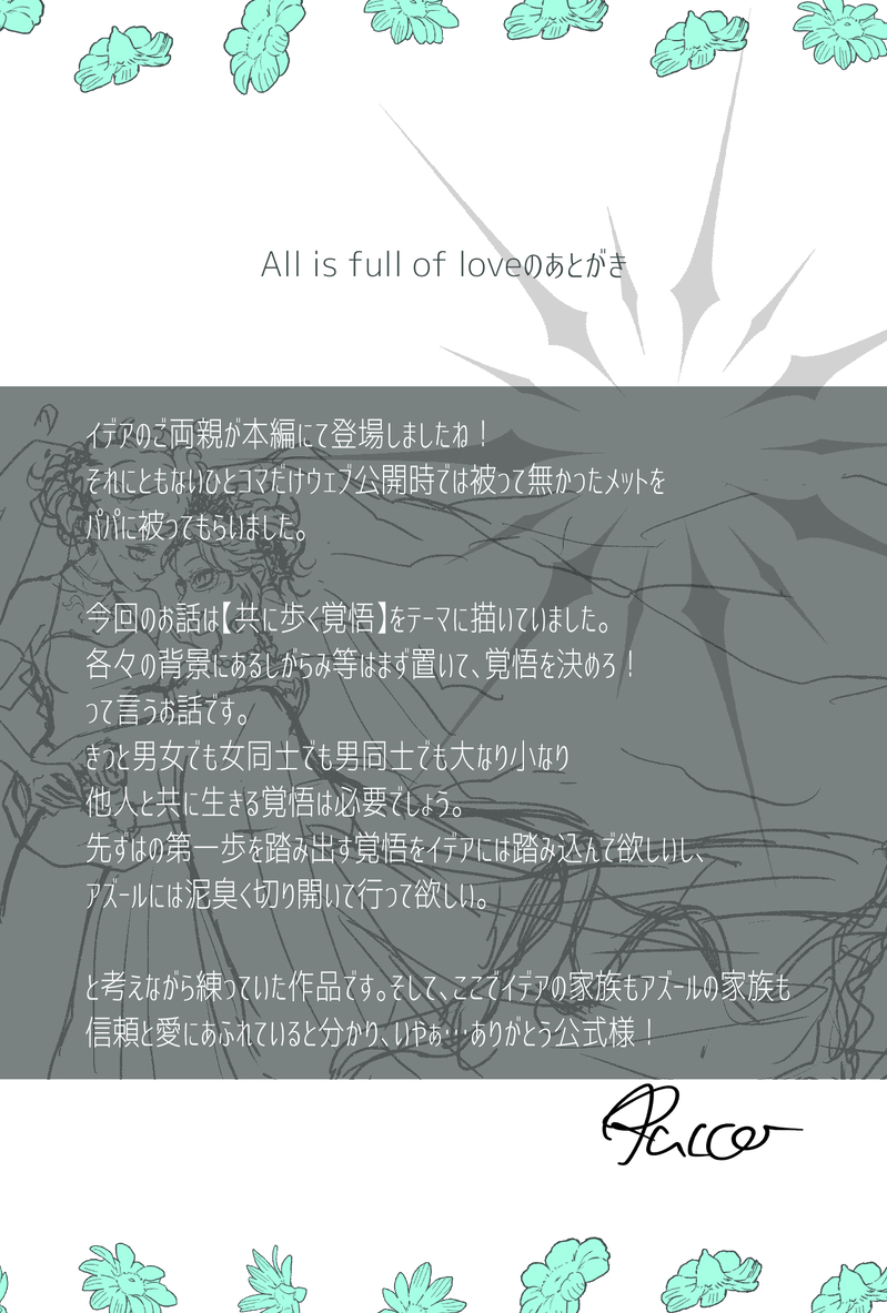 RUCCObonbon☆quiet followMEMOAll si full of loveのあとがきです。 Tap to full screen (size:1378x2039).Repost is prohibited Let's send reactions! freqpopularsnackothersPayment processing Replies from the creator Follow creator you care about!☆quiet follow RUCCObonbonPAST⚠︎どちらも女体化した百合作品ですので観覧ご注意ください。2023年6月に発行したイデ♀×アズ♀百合結婚をテーマにした作品です。完売し増版予定もないため丁度ウェブイベが結婚がテーマで開催と言う事でウェブ再録させていただきました。2年前の作品のため絵もだいぶ違うので恥ずかしいです(o˘◡˘o)掲載期限は設けませんのでゆっくりお楽しみください。 32 RUCCObonbonDONE結婚にまつわるあれやそれイベント開催ありがとうございます!ささやかですが作品を描かせていただきました。公開期限などは設けておりませんのでゆっくりご覧ください。 8 RUCCObonbonPASTほねたこ4開催おめでとうございます。2024年6月に発行し完売しております。再発行などは予定しておりませんのでweb再掲いたしました。手に取ってくださった方ありがとうございました! 27 RUCCObonbonDONEくつろぎイデアズむりくりWEBイベに間に合わせたので汚くてすみません。。 8 RUCCObonbonPROGRESSペロペロ煽り🐙 RUCCObonbonPASTだがから開催おめでとうございます。過去にX(旧Twitter)にて掲載していたイデアズイラストを集めました。⚠︎女体化、男性妊娠、パロなども含まれておりますので観覧には十分ご注意ください。 41 recommended works うぇりDOODLEイデアズワンドロ まあこ@のんびりプレイTRAININGイデアズ練習。※ポーズ集を参考にしています 白妙菊DOODLEえちち 3 tamagopan1902MEMOこんなの思いついたー!ってやつを見返すのにポイピクが便利かもとおもったので練習に投稿してみます! 445 RavenaDOODLEイデアズのワンドロ(+3hだけど)にちょっと色足したやつ。お題は『風邪』両片思いなイデアズ好き侍でござる。久しぶりにお絵描きできて満足。 2 RavenaDOODLE💀🐙ワンドロ『錬金術』の。時間あったらもうちょっとちゃんと描きたいな。でもお絵かき楽しゅうございました。 3 DEKEDON_PROGRESS線画で満足して色塗らなさそ〜なので…ナチュラルにいちゃつくデァズ(付き合ってない)がすき taki05011502DONE完成した!出てないけど脱いでる注意です頼む、青いシーツに溺れてくれ…頼む…実家の金魚が危篤なんだ…! にゃんきち(パンツ)PAST2022.05.04内緒のサマリー内頒布イデアズパンツ合同誌 執筆パンツ掲載分です。 14
