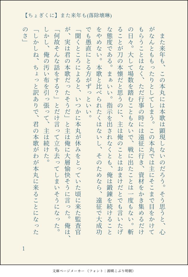 お題は「また来年も」、長義がなかなか来ない本丸の国広の話