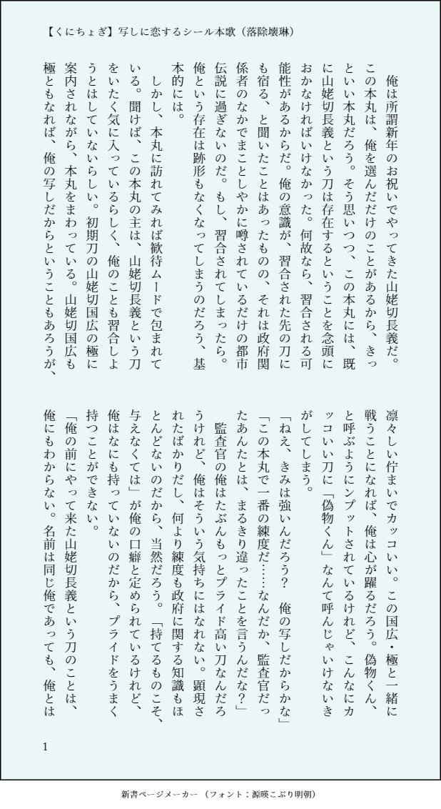 【くにちょぎ】写しに恋するシール本歌