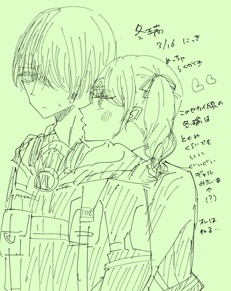 林(りん)☆quiet followDOODLE冬瑞 めちゃ落書き そして日記 めちゃ眠い おやすみ #冬瑞 dongrui Tap to full screen (size:1000x1261).Repost is prohibited Let's send reactions! freqpopularsnackothersPayment processing Replies from the creator Follow creator you care about!☆quiet follow 林(りん)TRAINING絵の練習(日付変わった) 林(りん)TRAINING2025年1月11日林の冬瑞へのお題は『さらば、日常・天国より地獄より君に辿り着きたい・無邪気時々悪魔』です。#shindanmakerhttps://shindanmaker.com/67048↑から、『さらば、日常』で冬瑞 1721 林(りん)DOODLE男子生徒C「何もなきゃ普通に可愛いよな〜」に対しての付き合ってる冬瑞 林(りん)DONE一瞬でラブコメになる冬瑞 林(りん)DOODLE日記(冬瑞) 林(りん)DONE初夜を超えて距離感がわやわやになる冬瑞見たかった(煩悩) related works 林(りん)TRAINING12/14 絵の練習(冬瑞) 林(りん)DONE付き合っとる冬瑞 林(りん)TRAINING特に続かない冬瑞のワンシーン 林(りん)DOODLEらくがき(冬瑞) 林(りん)DOODLE12/14 落書き兼絵の練習②(冬瑞) 林(りん)TRAINING冬瑞謎落書き(2022/12/13) 林(りん)TRAINING擬似陰キャ(?)×ギャル冬瑞 林(りん)TRAINING特に続かない冬瑞の1ページ 林(りん)DONE冬瑞の雰囲気漫画をかいたよ 2 recommended works ムゥチャDOODLEあなたはベルスミの「何を言おうと言い訳になるだけだから」という台詞を使った1コマ漫画を描きます。#この台詞を使って1コマ漫画 #shindanmakerhttps://shindanmaker.com/524501 沙弥(さや)DOODLEあなたは彦殿の「俺(私)の目見て言って」という台詞を使った1コマ漫画を描きます。#この台詞を使って1コマ漫画で、描きました殿は彦が好き過ぎる(ソースは私の脳内)ので時々感極まって話を聞いていない。殿は基本的に家臣箱推しだと思っています。多分護衛つけずに出歩いたり変な薬作って『もうしないって云って下さい』って怒られ発生してる いちず🍊DOODLEあなたは恬貂が心底恥ずかしそうに「......それは反則でしょ」という台詞を呟く1コマ漫画を描きます。#この台詞を使って1コマ漫画 #shindanmakerhttps://shindanmaker.com/528633 saya_wlDONE貴方はジョニルキで『御不満ですか?』をお題にして140文字SSを書いてください。#shindanmakerhttps://t.co/ig01EVbN54ルーキーは男です#さやSS幻覚 みみみTRAINING貴方は萌えが足りないと感じたら『うたた寝している相手に自分の上着をかけてあげるみみみのラーアス』をかいてみましょう。幸せにしてあげてください。#shindanmakerhttps://shindanmaker.com/524738 3 ゆうや。DOODLEアキヒカの場合:ふざけて相手をだっこしたら胸の中で大人しくなって、しばらく可愛い恋人を抱きしめました。#ほのぼのなふたり #shindanmakerhttps://shindanmaker.com/715149 nannno24DOODLE北治🍶#この台詞を使って1コマ漫画 Luinil7TRAINING診断メーカーが悉く対になるような結果しか吐かない貴方はイーグルで『逃げるものは追うしかない』、ジェオで『愛せるなら愛してみろ』をお題にして140文字SSを書いてください。#shindanmakerhttps://shindanmaker.com/375517 2 さいかMOURNINGあなたはやまつばで【押して倒れる仲ならば / 目を閉じてそのまま】をお題にして140字SSを書いてください。#shindanmakerhttps://shindanmaker.com/780366 2
