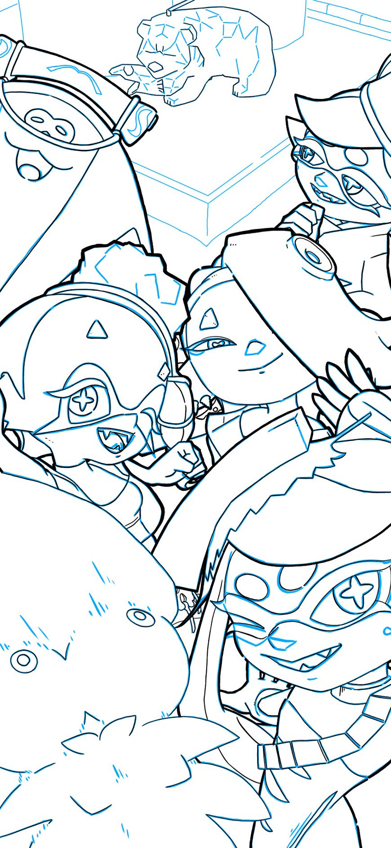 リハビリ?でスプラトゥーン3の壁紙のイラスト化描いてます。木彫りクマサン描けん