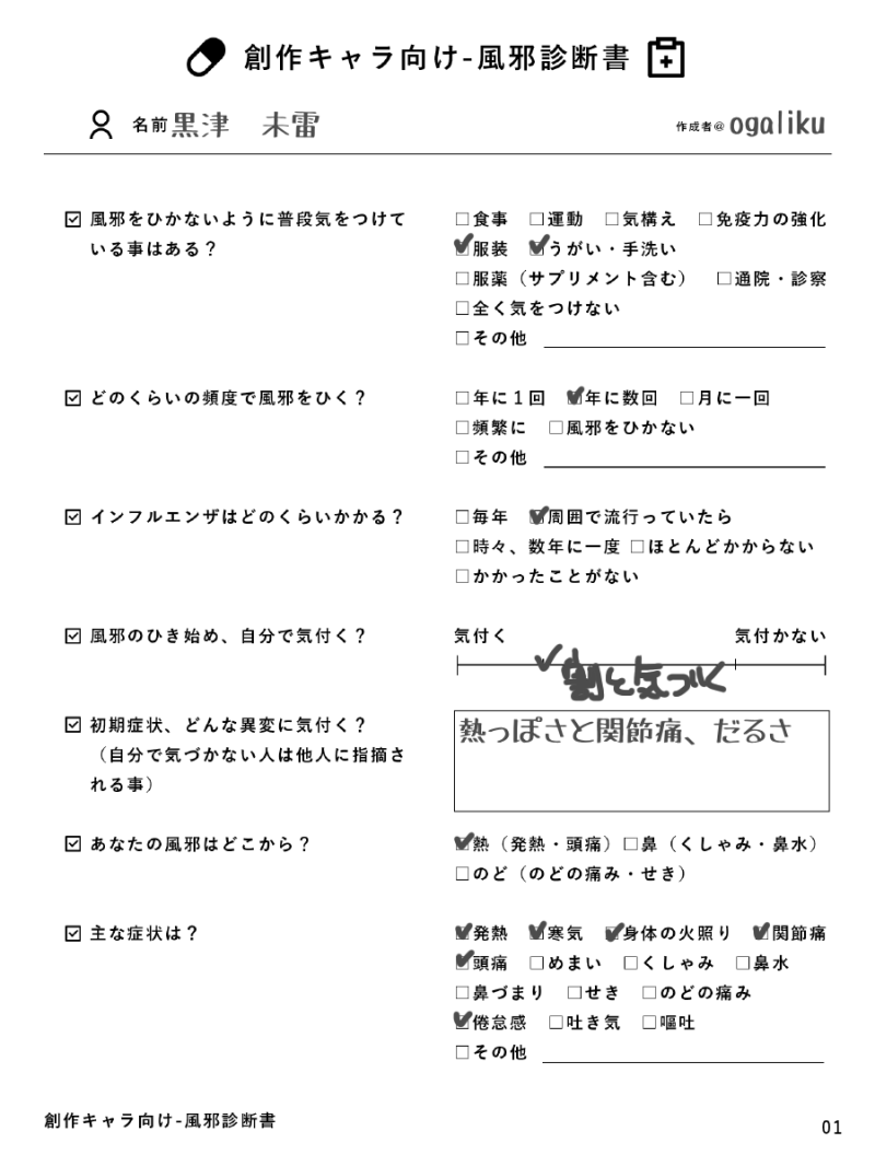 ogaliku☆quiet followDONE創作キャラ向け-風邪診断書のテンプレお借りしました!自PC黒津未雷でやりました。 ##くろっぴ show all(+2 images) Tap to full screen (size:900x1200).Repost is prohibited Let's send reactions! freqpopularsnackothersPayment processing Replies from the creator Follow creator you care about!☆quiet follow ogalikuDONE2025/8/9 吐くの日記念 嘔吐ネタイラスト 9 ogalikuSPOILER【CoC 偶像は四季に祈る のネタバレを含みます 未通過、通過予定の方は×】常夜の待ち受けを描いたよ⛱️ ogalikuDONE体調不良ネタイラスト!いいねありがとうございました! 11 ogalikuDOODLEメイドの日遅刻 アーヴィンくんちゃんの水着メイドとロングメイド 3 ogalikuSPOILER【CoC 十二星座館殺人事件 のネタバレを含みます 現行/未通過×】KPさんに触発されて描いたわよ〜〜 3 ogalikuMEMOテンプレートお借りしました!好きな要素が多すぎるな?